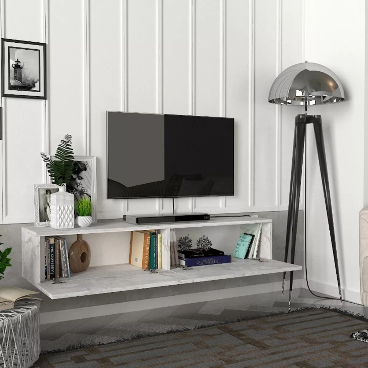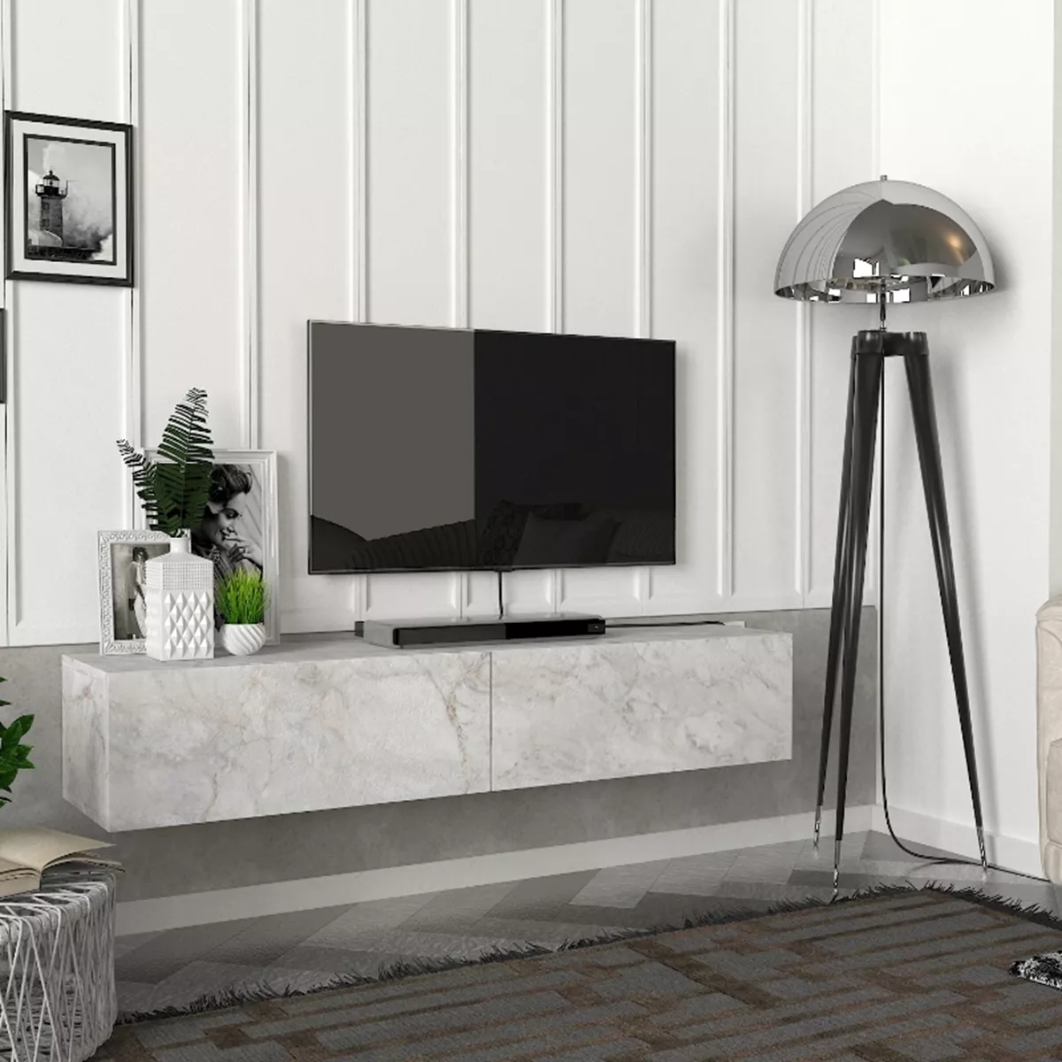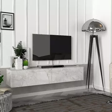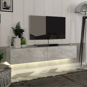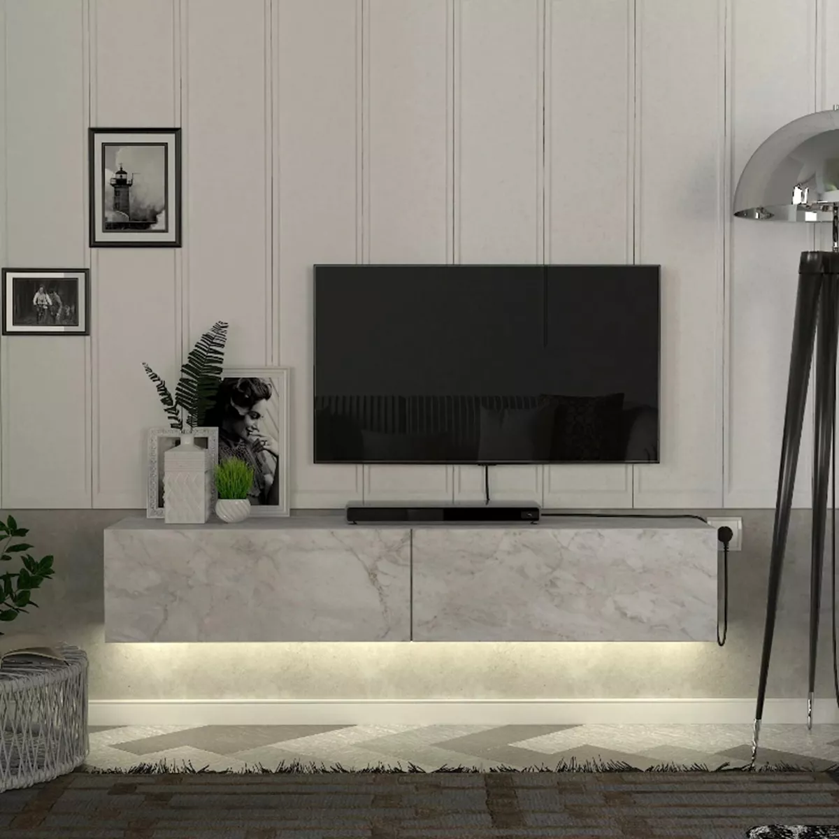 Έπιπλο τηλεόρασης επιτοίχιο Aristo Megapap με LED χρώμα λευκό εφέ μαρμάρου 135x31,6x25εκ.