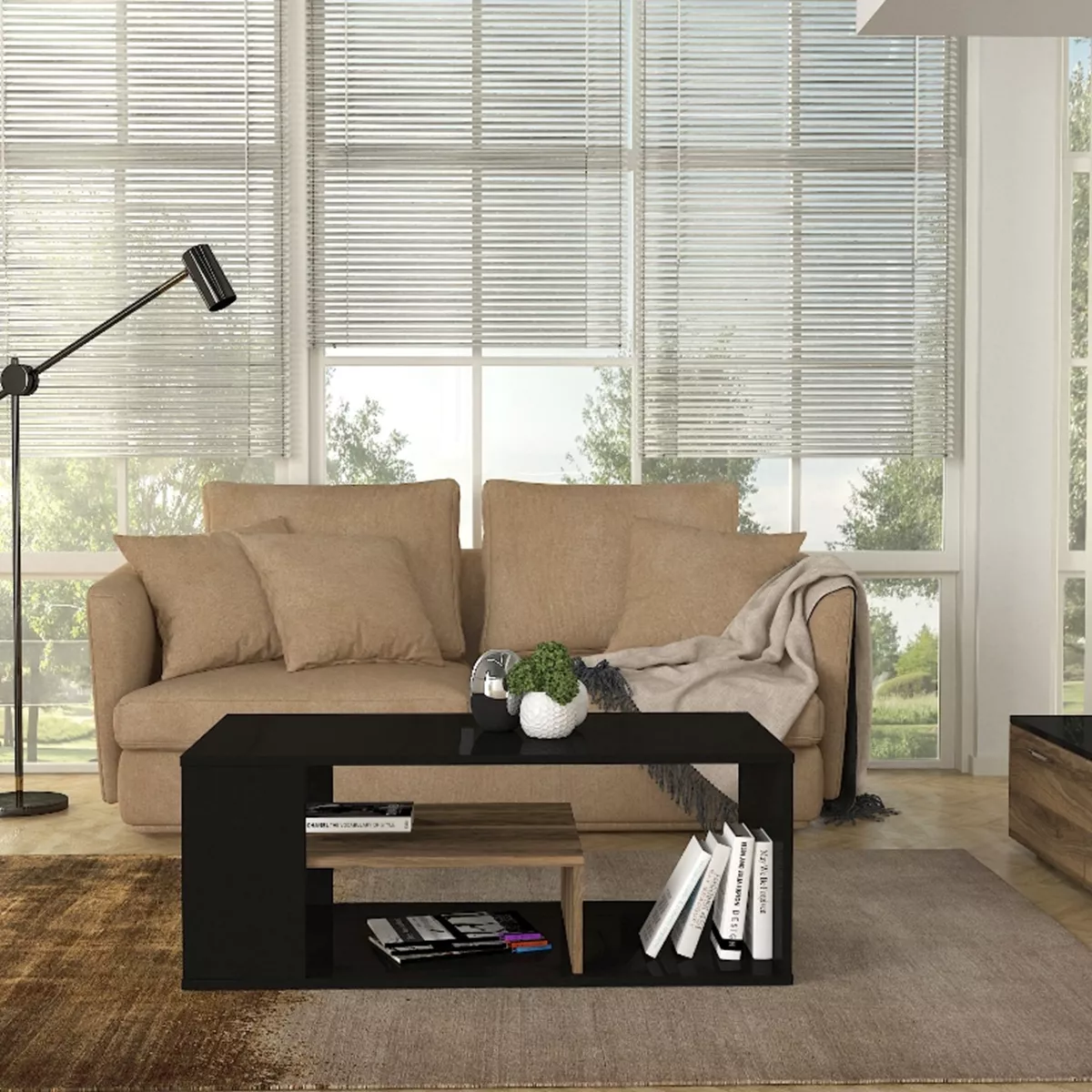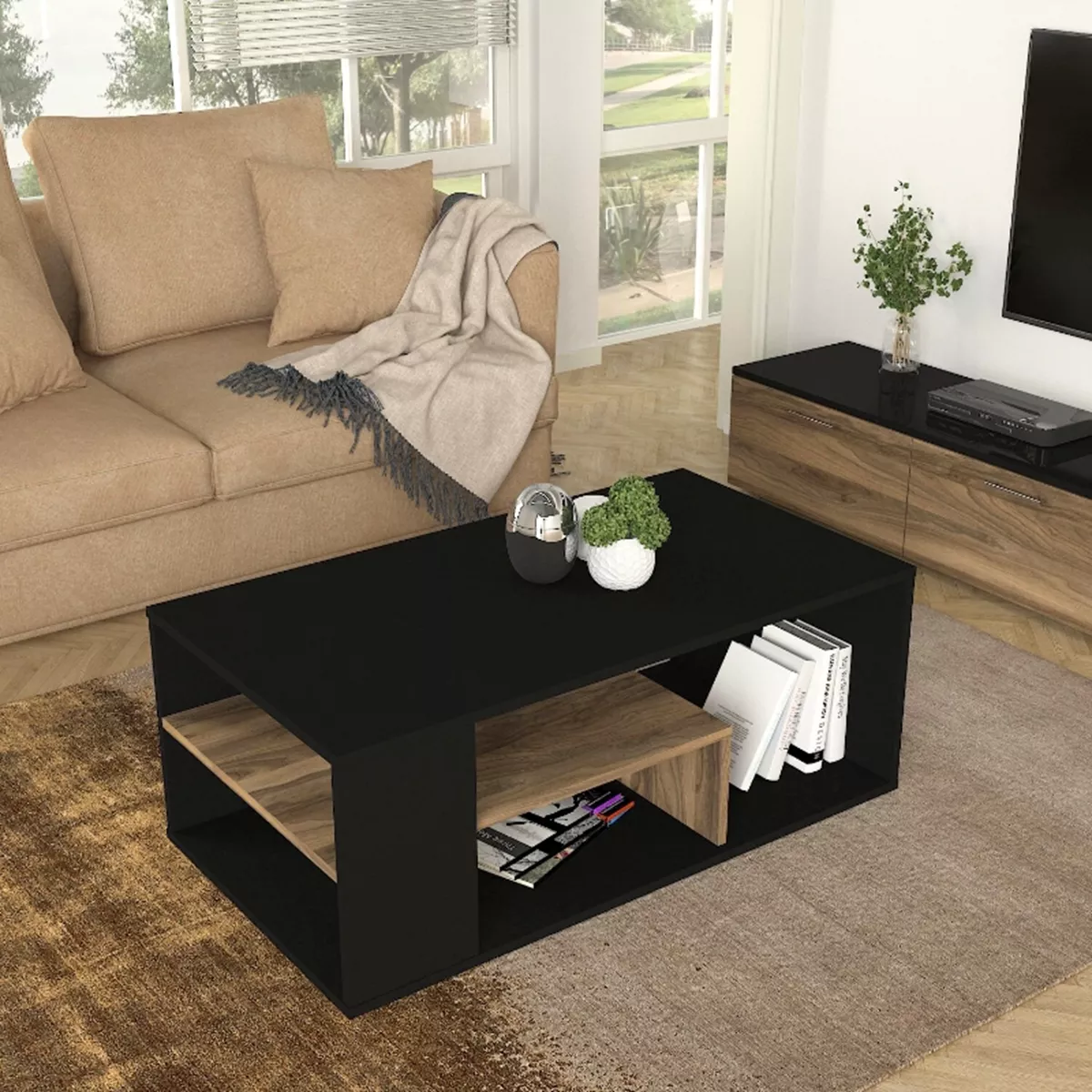Τραπεζάκι σαλονιού Abdera Megapap χρώμα μαύρο - καρυδί 110x60x42εκ.