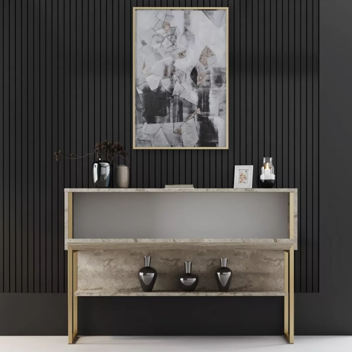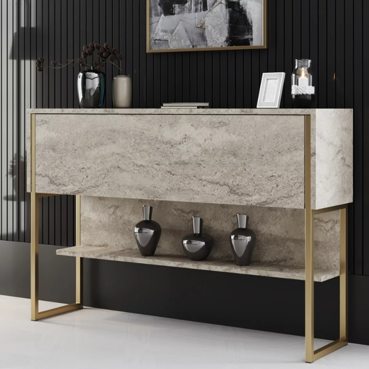 Μπουφές Luxe Megapap χρώμα travertine - χρυσό 120x30x80εκ.