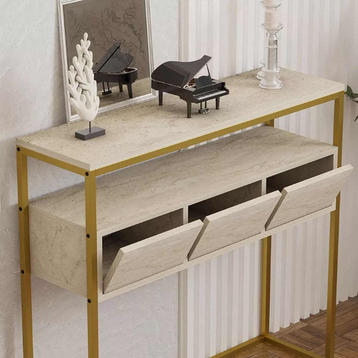 Κονσόλα Guarda Megapap χρώμα μπεζ travertine - χρυσό 100x29x90εκ.