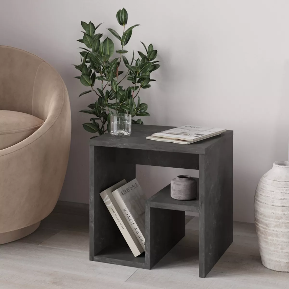 Τραπεζάκι βοηθητικό - Κομοδίνο Bon Megapap χρώμα γκρι ρετρό 40x35x40εκ.
