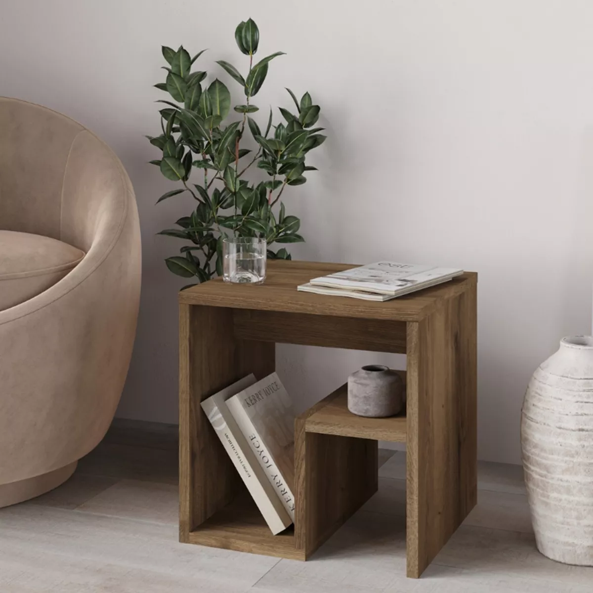 Τραπεζάκι βοηθητικό - Κομοδίνο Bon Megapap χρώμα ανοιχτό καρυδί 40x35x40εκ.