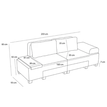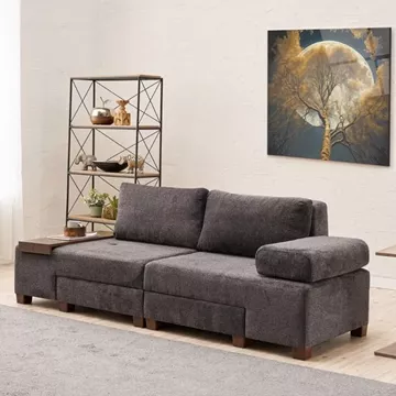 Καναπές - κρεβάτι πολυμορφικός Perenna Megapap τριθέσιος υφασμάτινος χρώμα ανθρακί 233x93x83εκ.