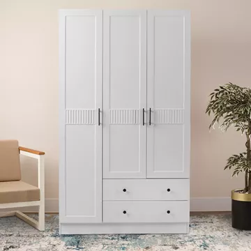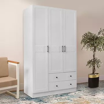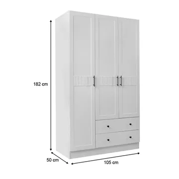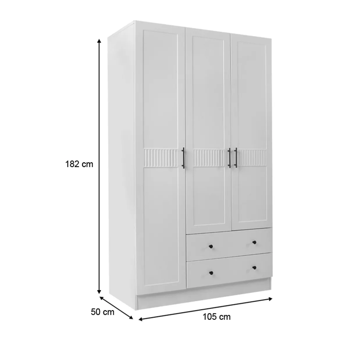 Ντουλάπα ρούχων Jenna Megapap τρίφυλλη χρώμα λευκό 105x50x182εκ.
