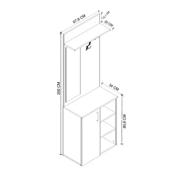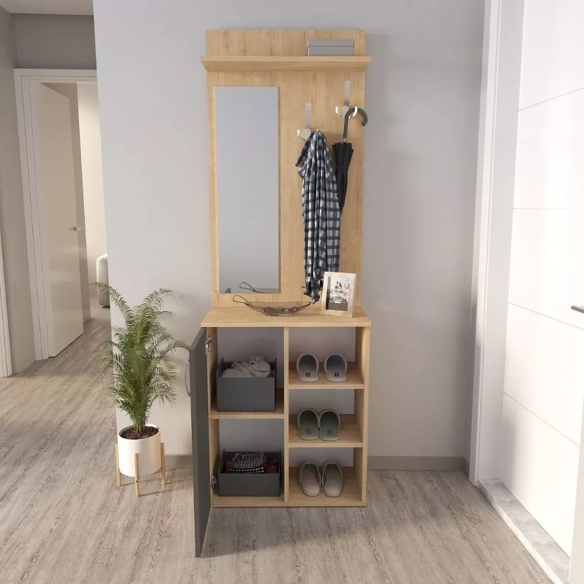 Έπιπλο εισόδου Norva Megapap χρώμα sapphire oak - ανθρακί 67,8x36,3x200,6εκ.