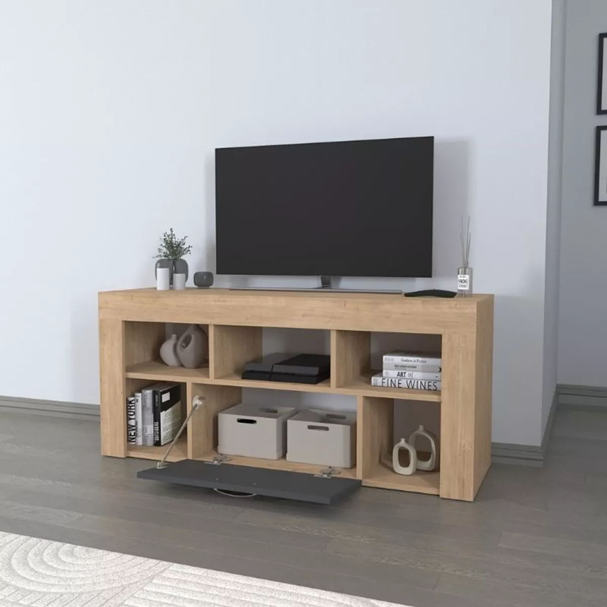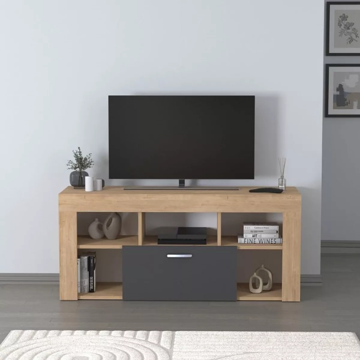 Έπιπλο τηλεόρασης Midili Megapap χρώμα sapphire oak - ανθρακί 135x42x60,7εκ.
