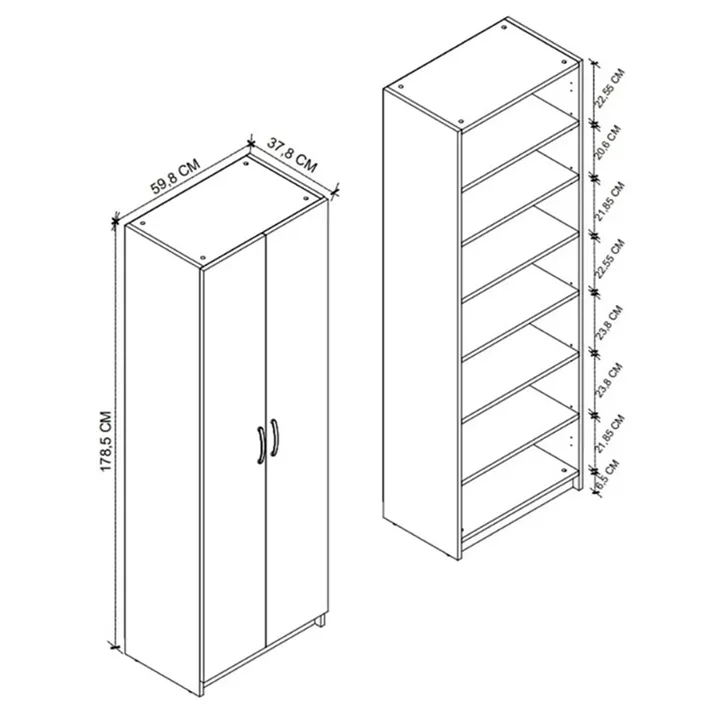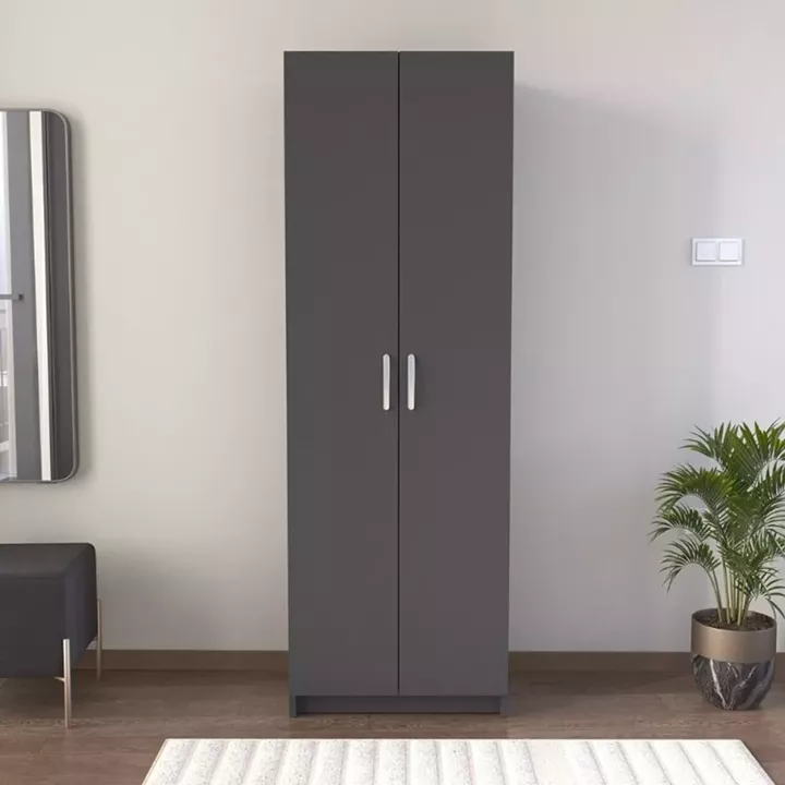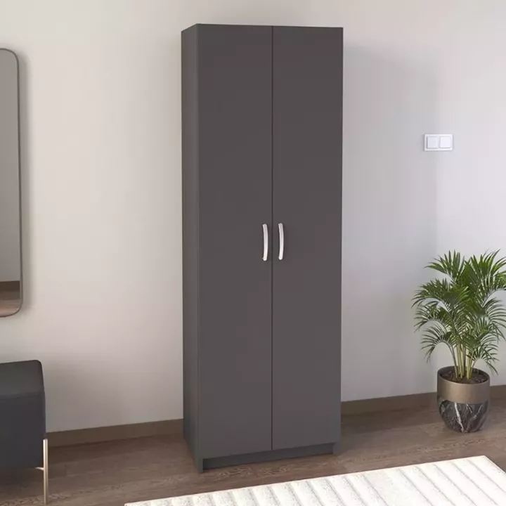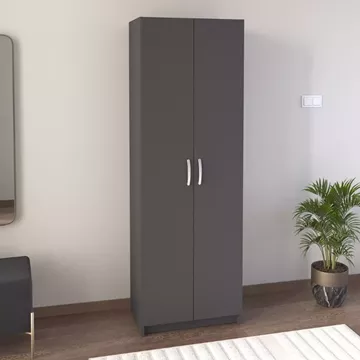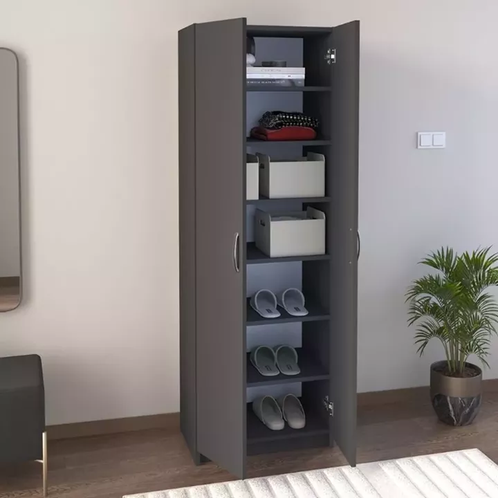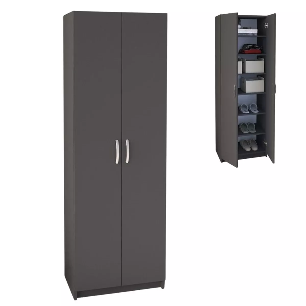 Ντουλάπα ρούχων - Παπουτσοθήκη Renso Megapap δίφυλλη χρώμα ανθρακί 59,8x37,8x178,5εκ.