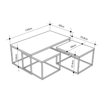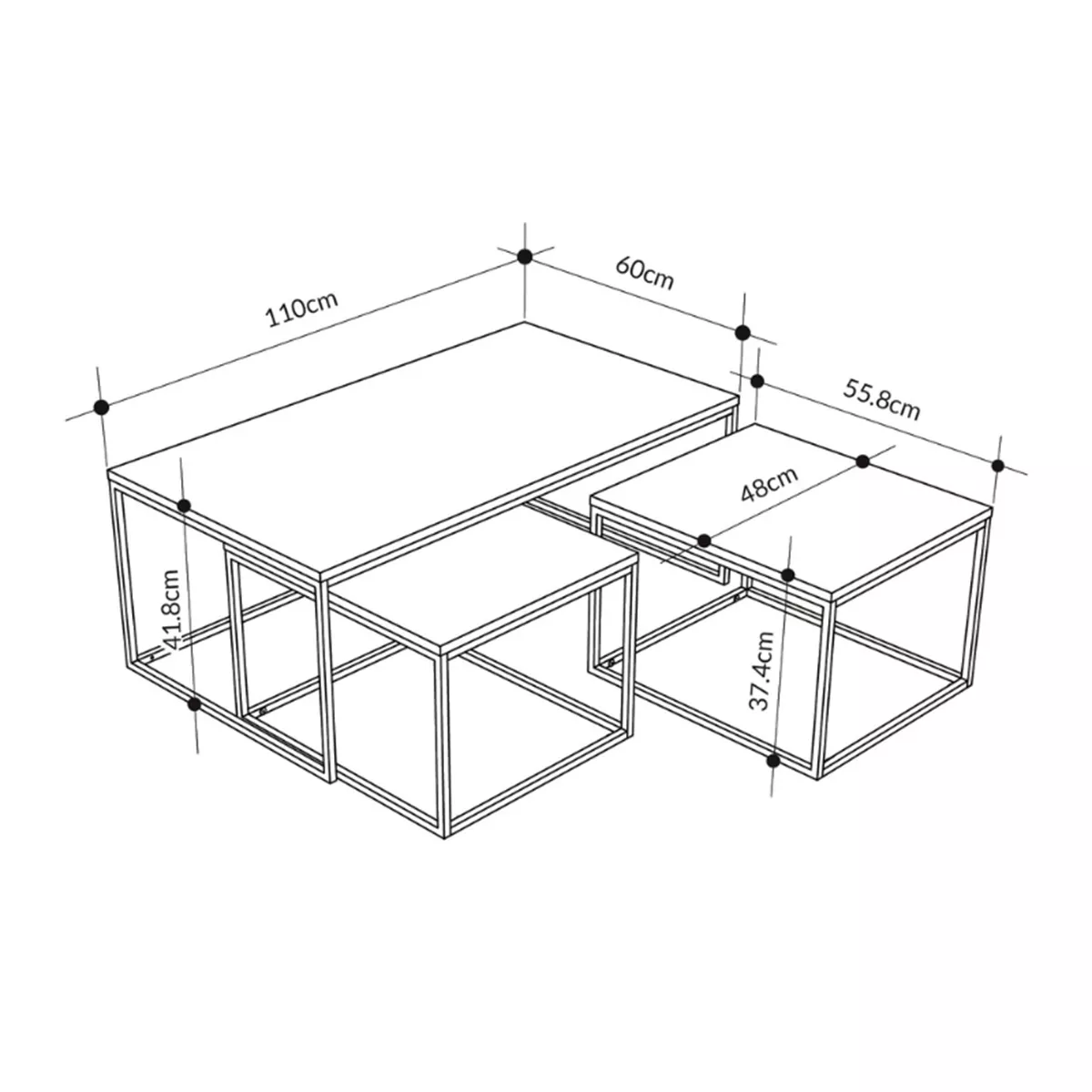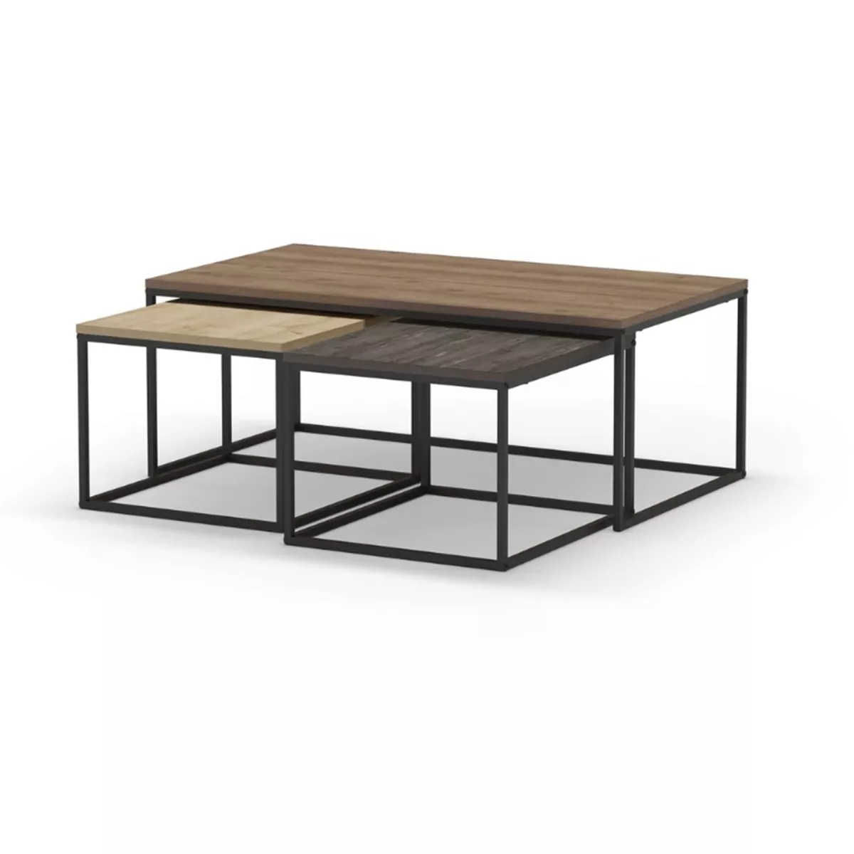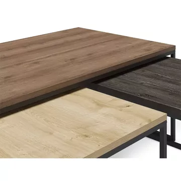 Τραπεζάκι σαλονιού σετ 3 τμχ. Camelia Megapap χρώμα ανοιχτό καρυδί - sapphire oak - καφέ 110x60x41,8εκ.
