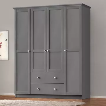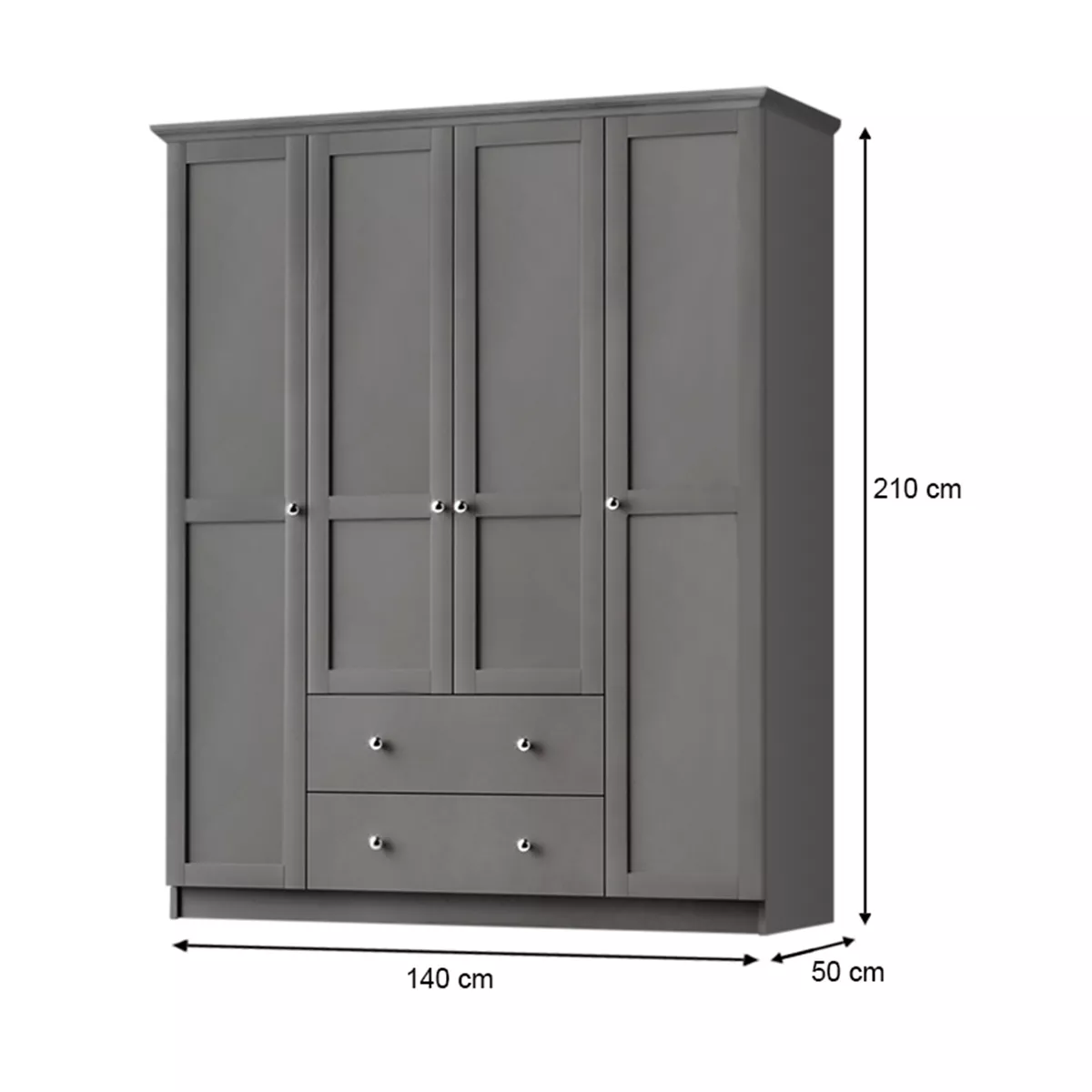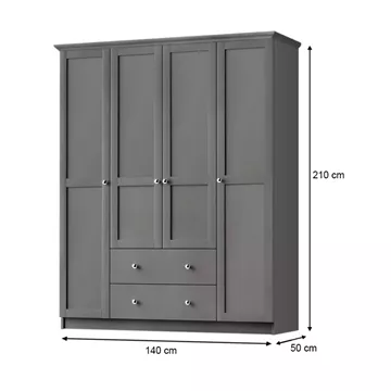 Ντουλάπα ρούχων Emily Megapap τετράφυλλη χρώμα ανθρακί 140x50x210εκ.