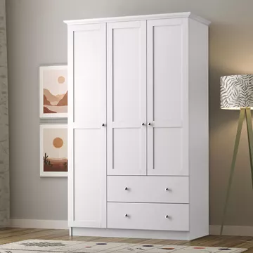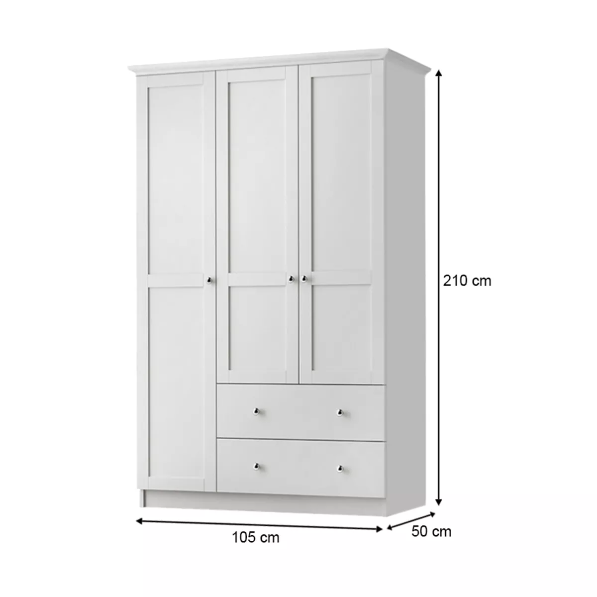 Ντουλάπα ρούχων Emily Megapap τρίφυλλη χρώμα λευκό 105x50x210εκ.