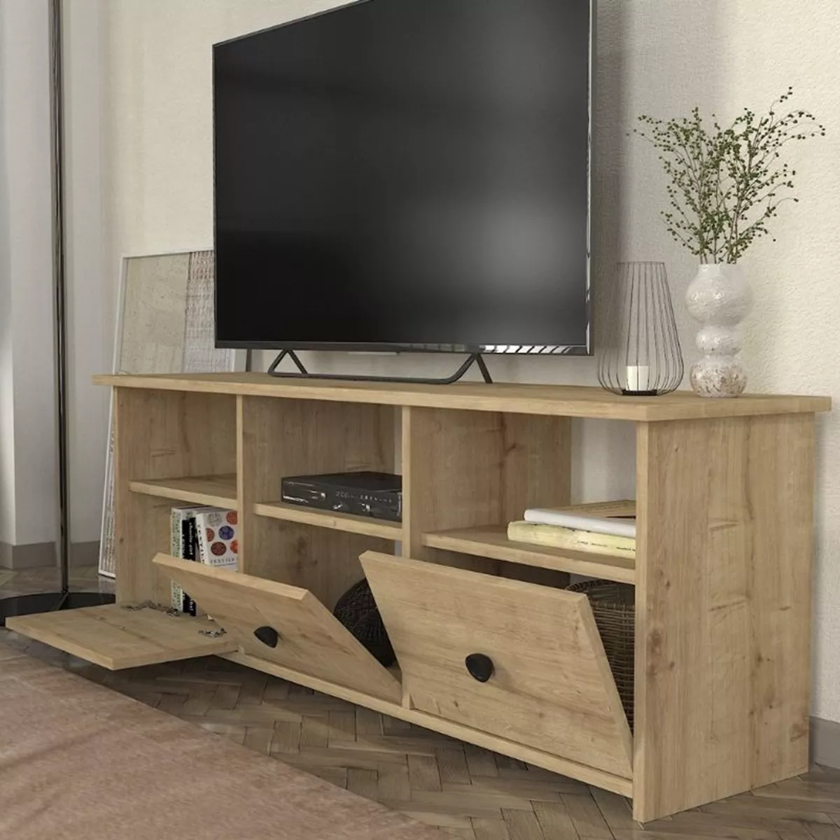 Έπιπλο τηλεόρασης Mahen Megapap χρώμα sapphire oak 140x35x49,8εκ.