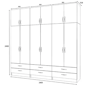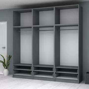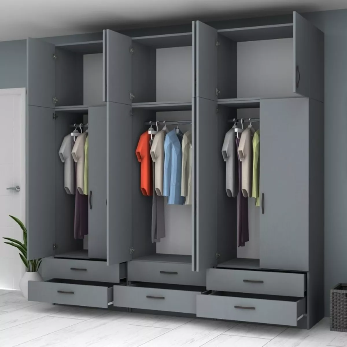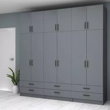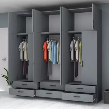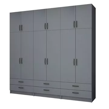 Ντουλάπα ρούχων Ricardo Megapap εξάφυλλη με πατάρι χρώμα ανθρακί 240x51,8x240εκ.