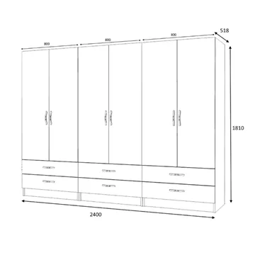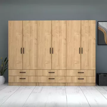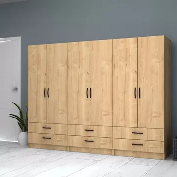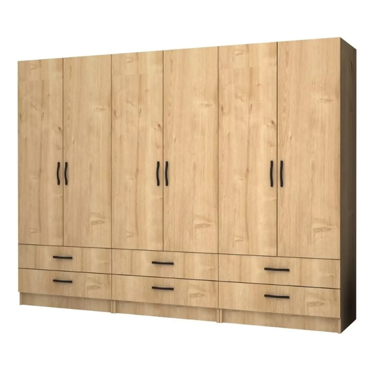 Ντουλάπα ρούχων Ricardo Megapap εξάφυλλη χρώμα φυσικό οξιάς 240x51,8x181εκ.