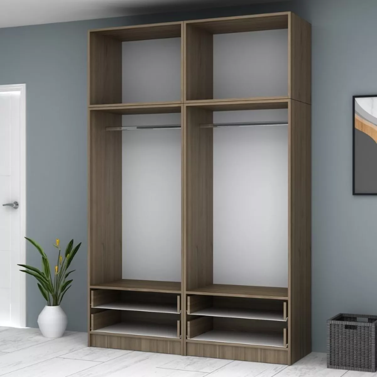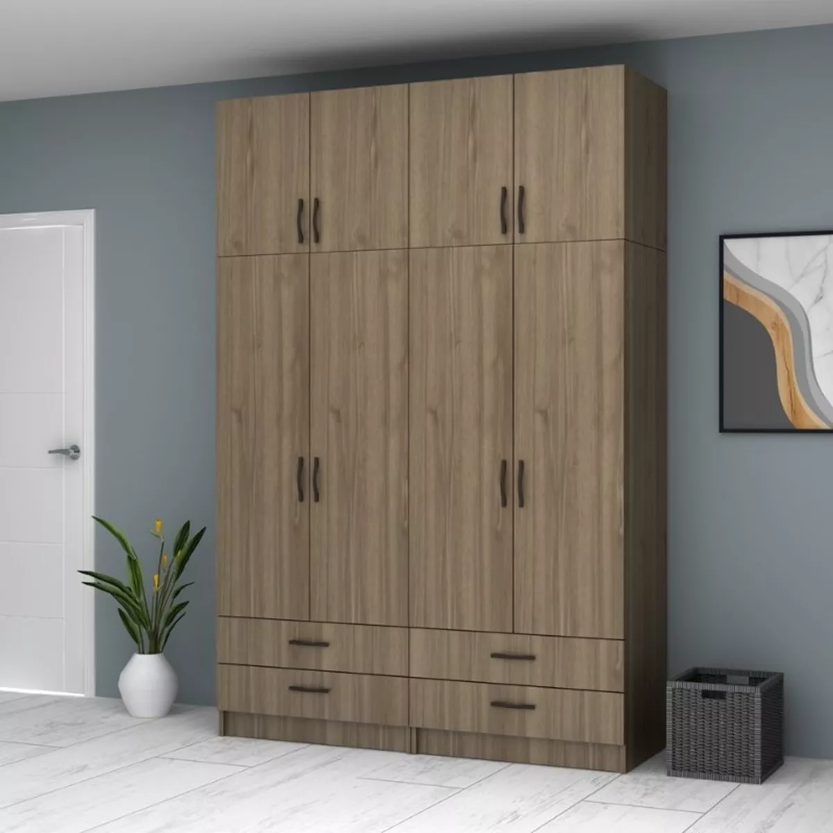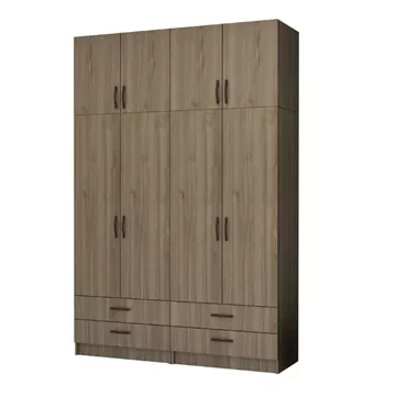 Ντουλάπα ρούχων Ricardo Megapap τετράφυλλη με πατάρι χρώμα καρυδί 160x51,8x240εκ.