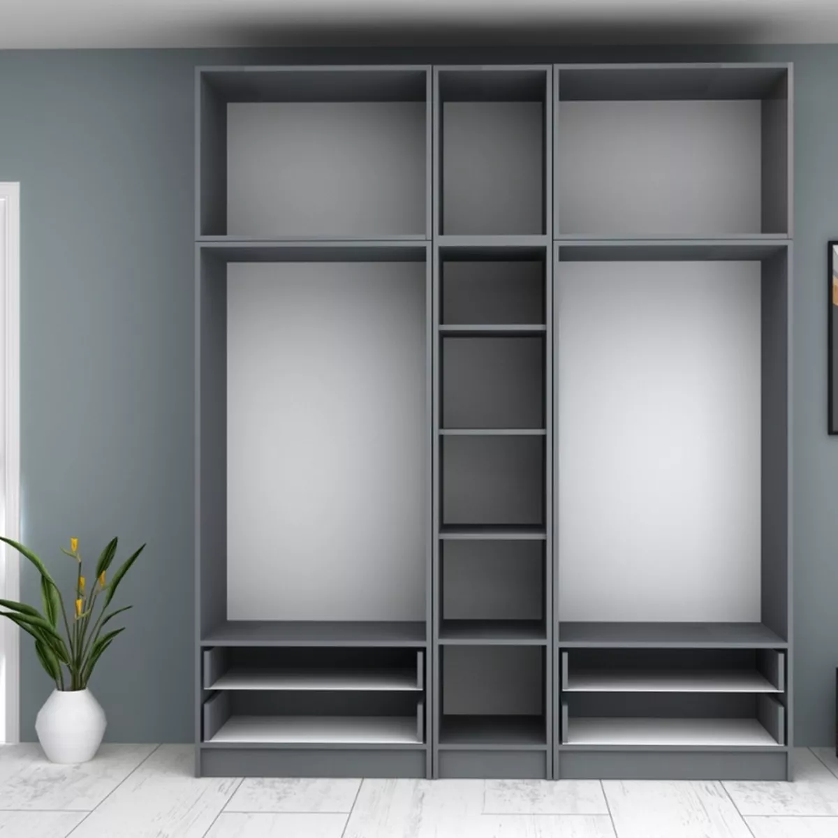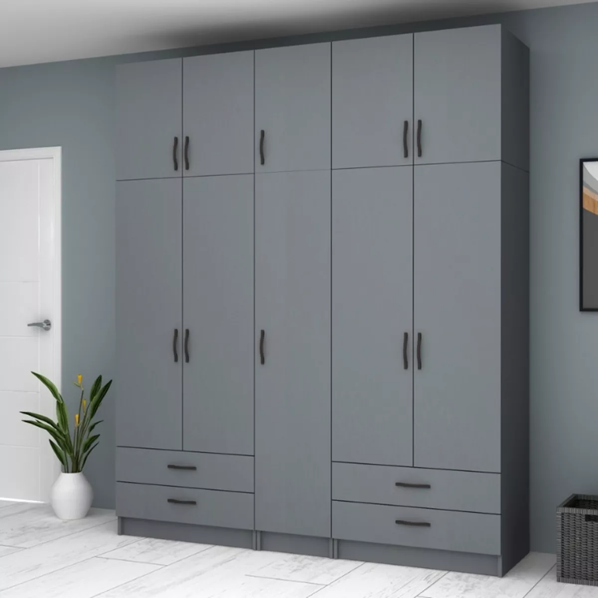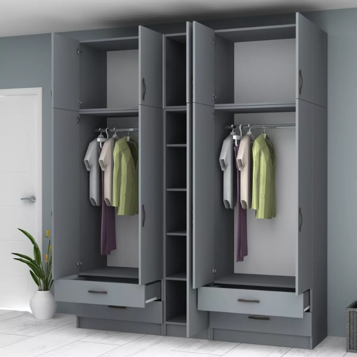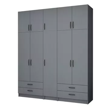 Ντουλάπα ρούχων Ricardo Megapap πεντάφυλλη με πατάρι χρώμα ανθρακί 200x51,8x240εκ.