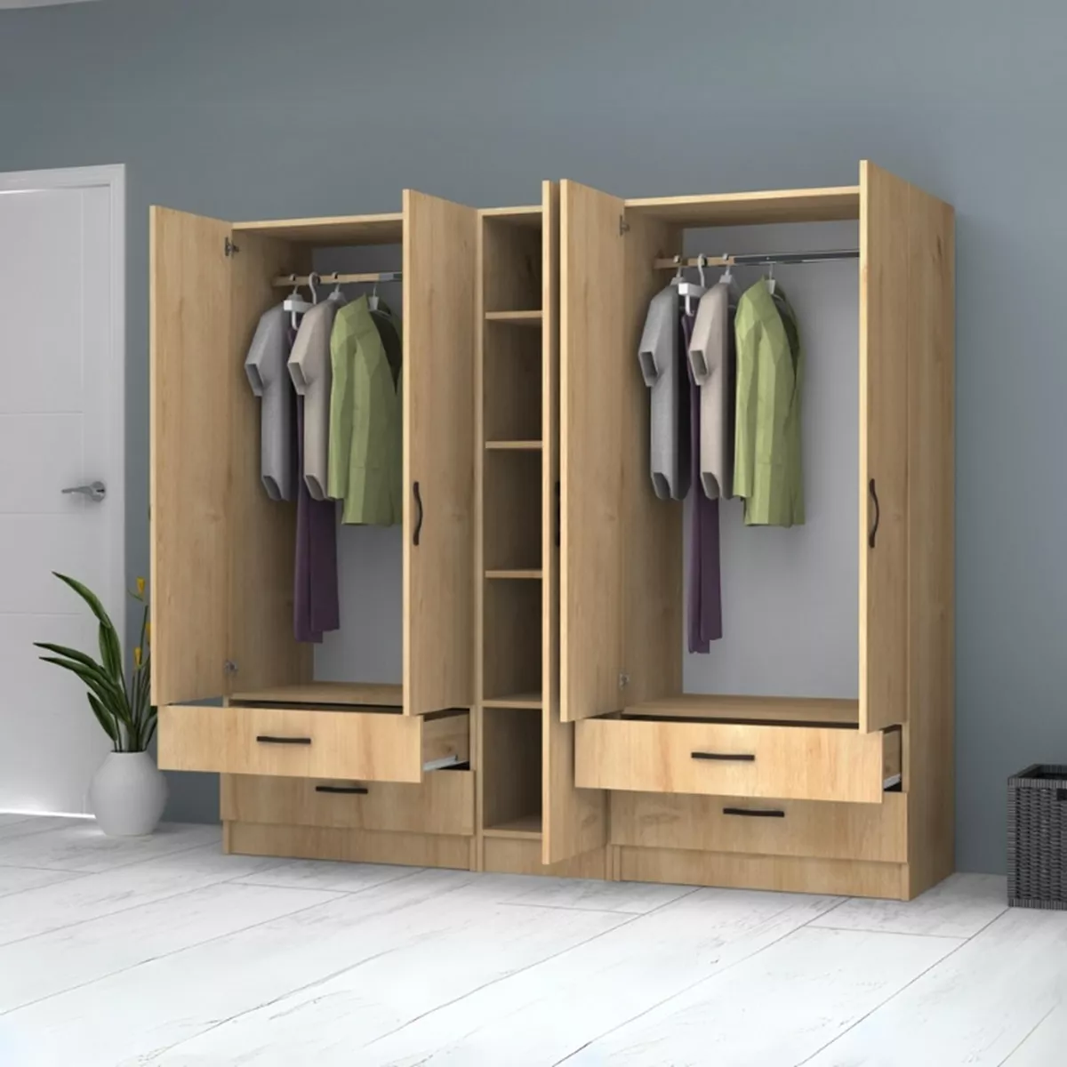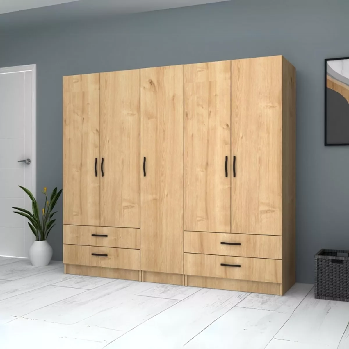 Ντουλάπα ρούχων Ricardo Megapap πεντάφυλλη χρώμα φυσικό οξιάς 200x51,8x181εκ.