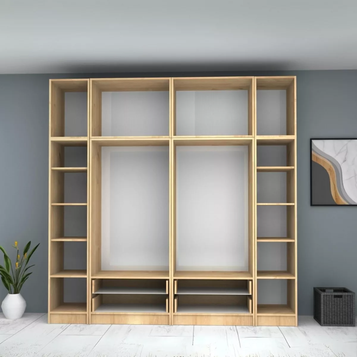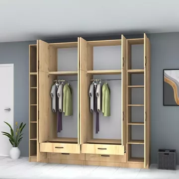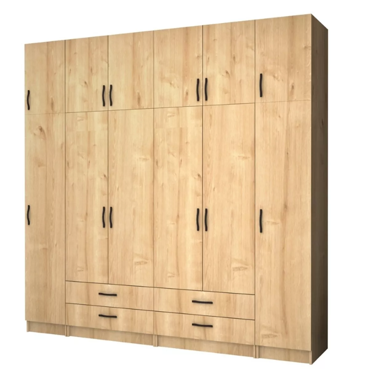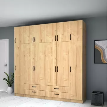 Ντουλάπα ρούχων Ricardo Megapap εξάφυλλη με πατάρι χρώμα φυσικό οξιάς 240x51,8x240εκ.