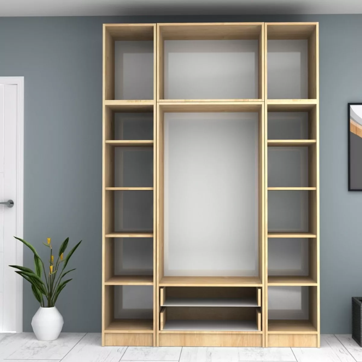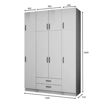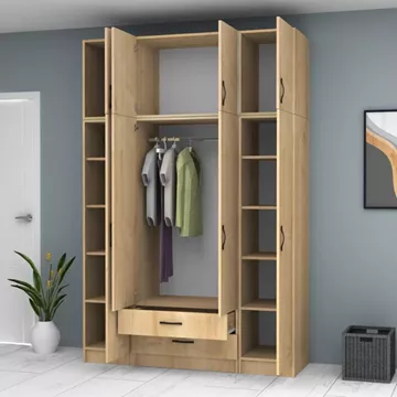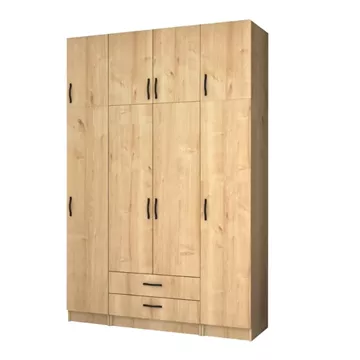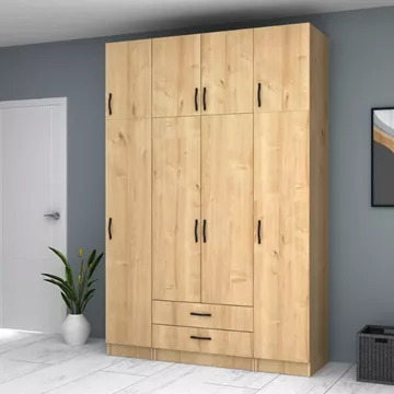 Ντουλάπα ρούχων Ricardo Megapap τετράφυλλη με πατάρι χρώμα φυσικό οξιάς 160x51,8x240εκ.