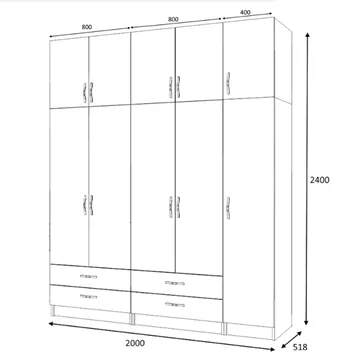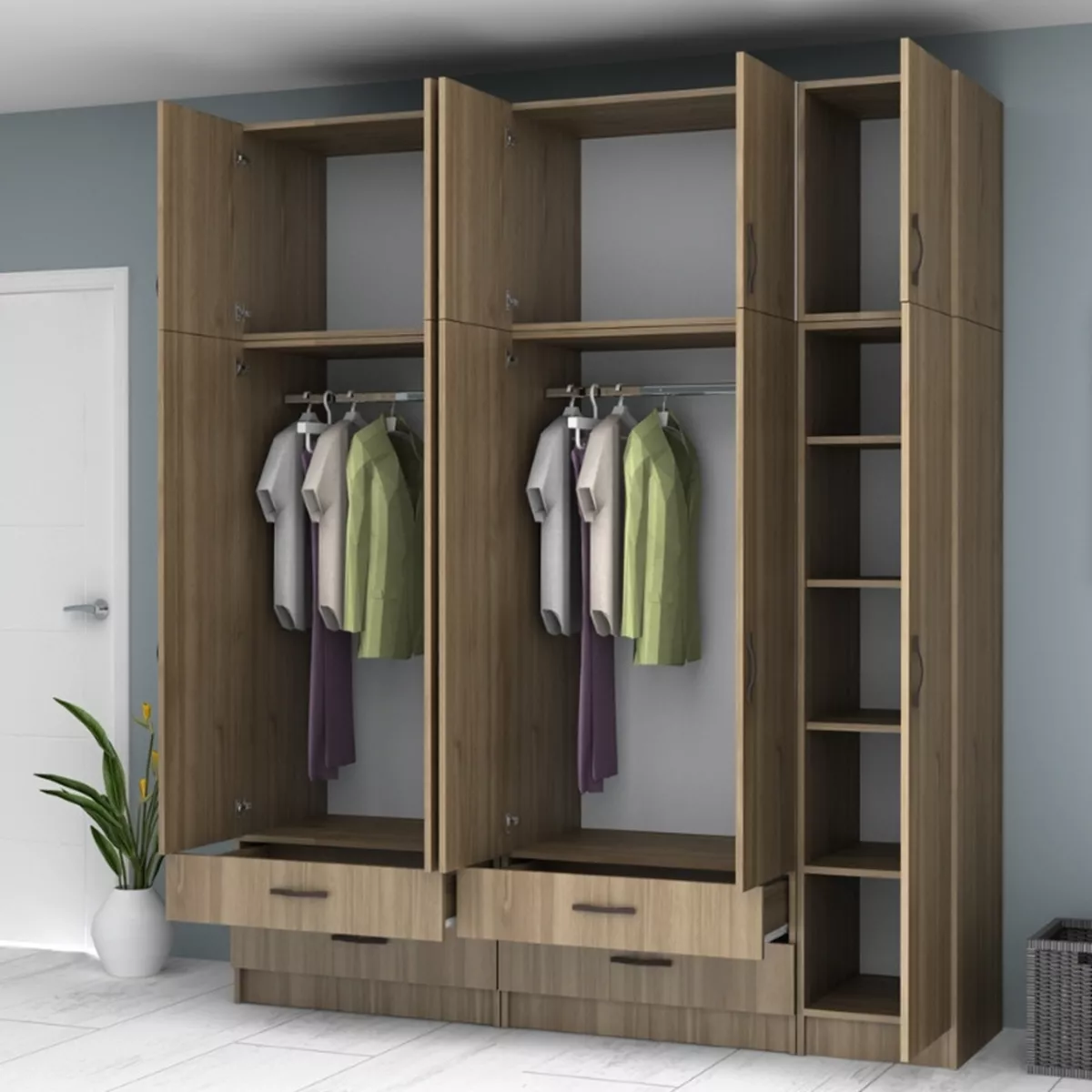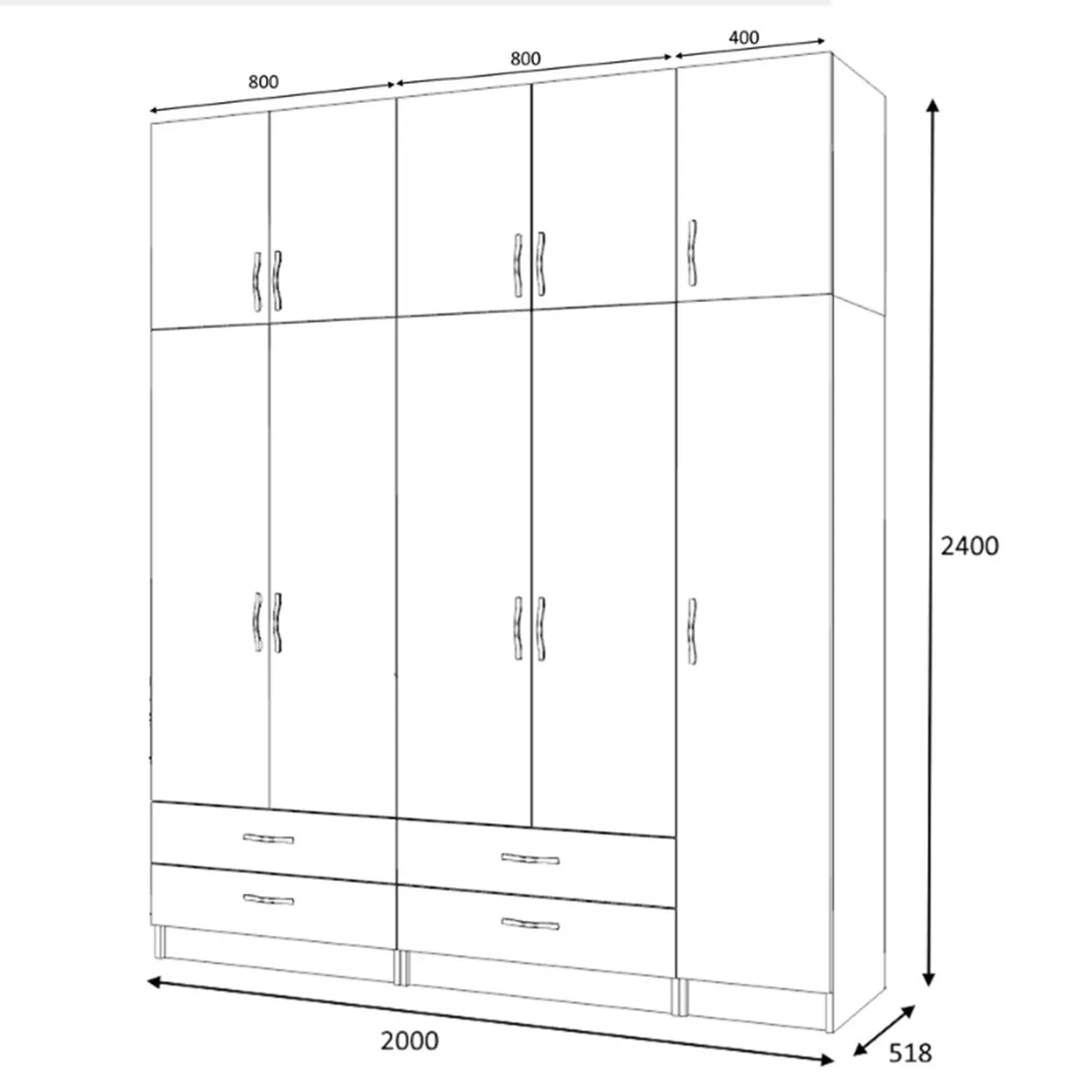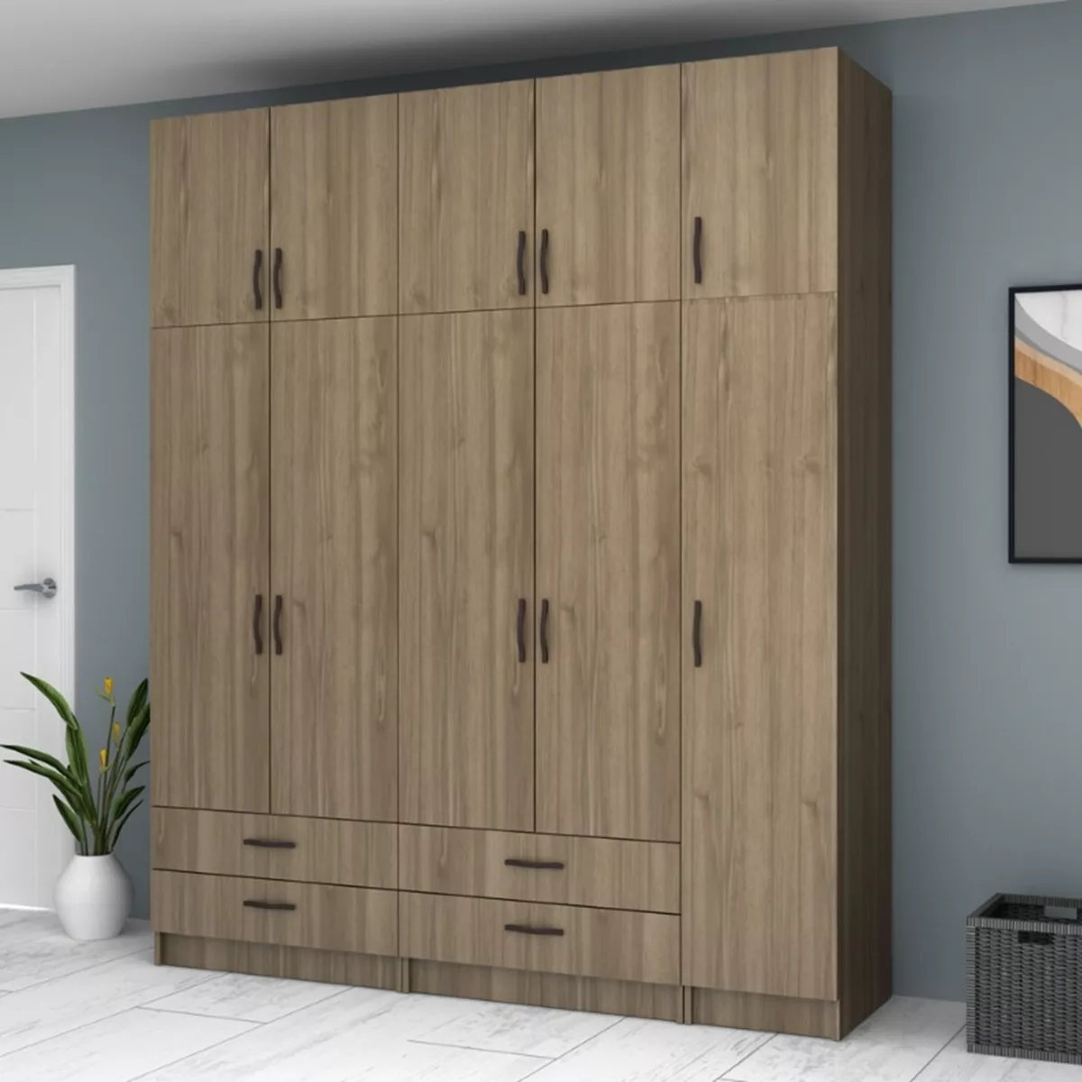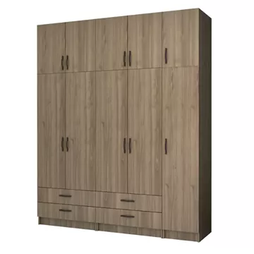Ντουλάπα ρούχων Ricardo Megapap πεντάφυλλη με πατάρι χρώμα καρυδί 200x51,8x240εκ.
