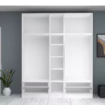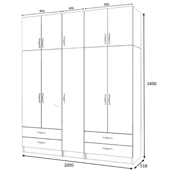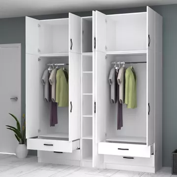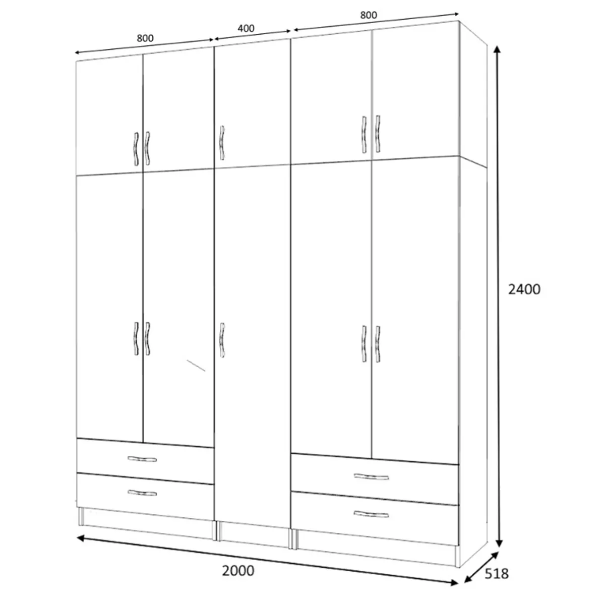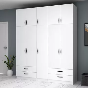 Ντουλάπα ρούχων Ricardo Megapap πεντάφυλλη με πατάρι χρώμα λευκό 200x51,8x240εκ.