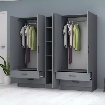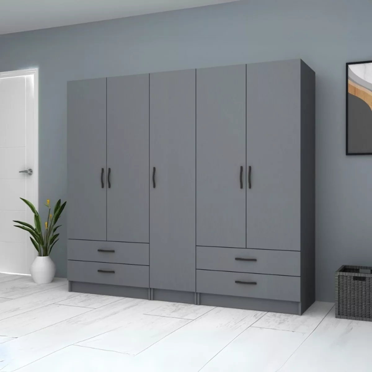 Ντουλάπα ρούχων Ricardo Megapap πεντάφυλλη χρώμα ανθρακί 200x51,8x181εκ.
