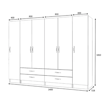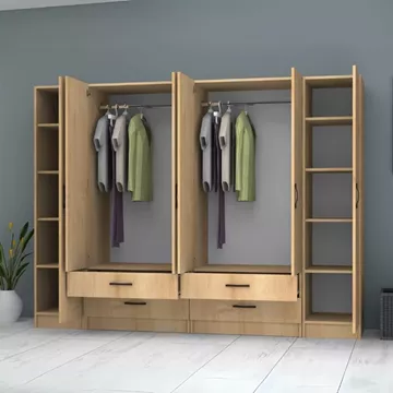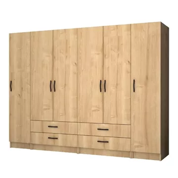 Ντουλάπα ρούχων Ricardo Megapap εξάφυλλη χρώμα φυσικό οξιάς 240x51,8x181εκ.