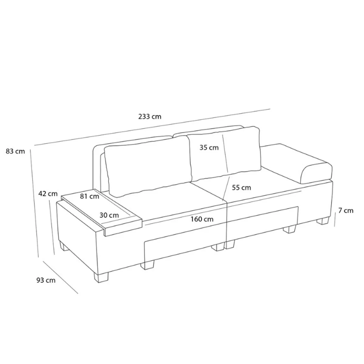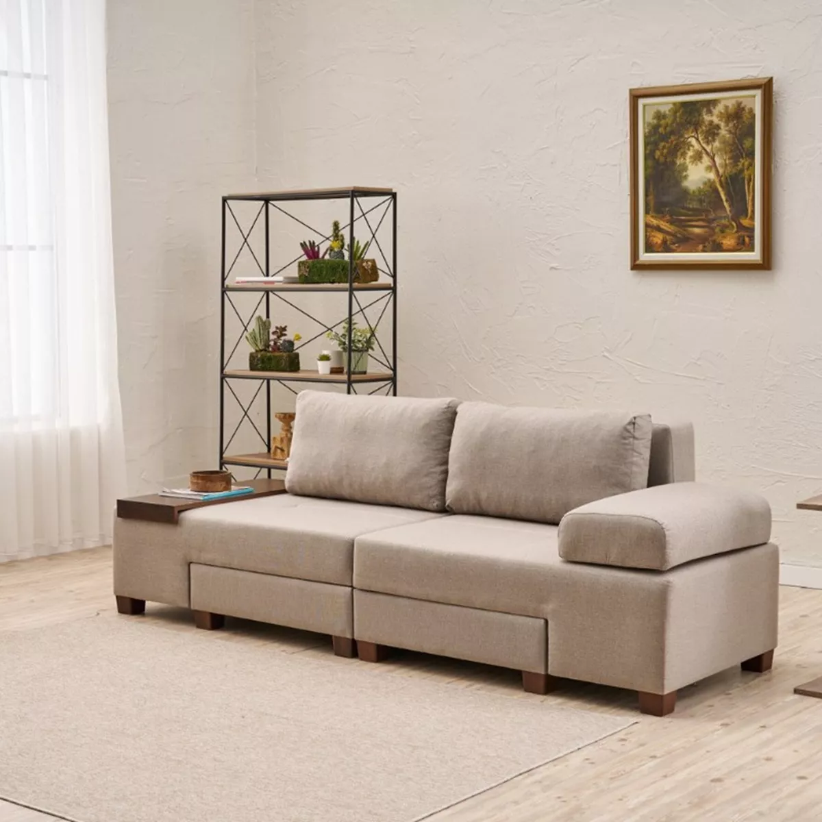 Καναπές - κρεβάτι πολυμορφικός Perenna Megapap τριθέσιος υφασμάτινος χρώμα κρεμ 233x93x83εκ.