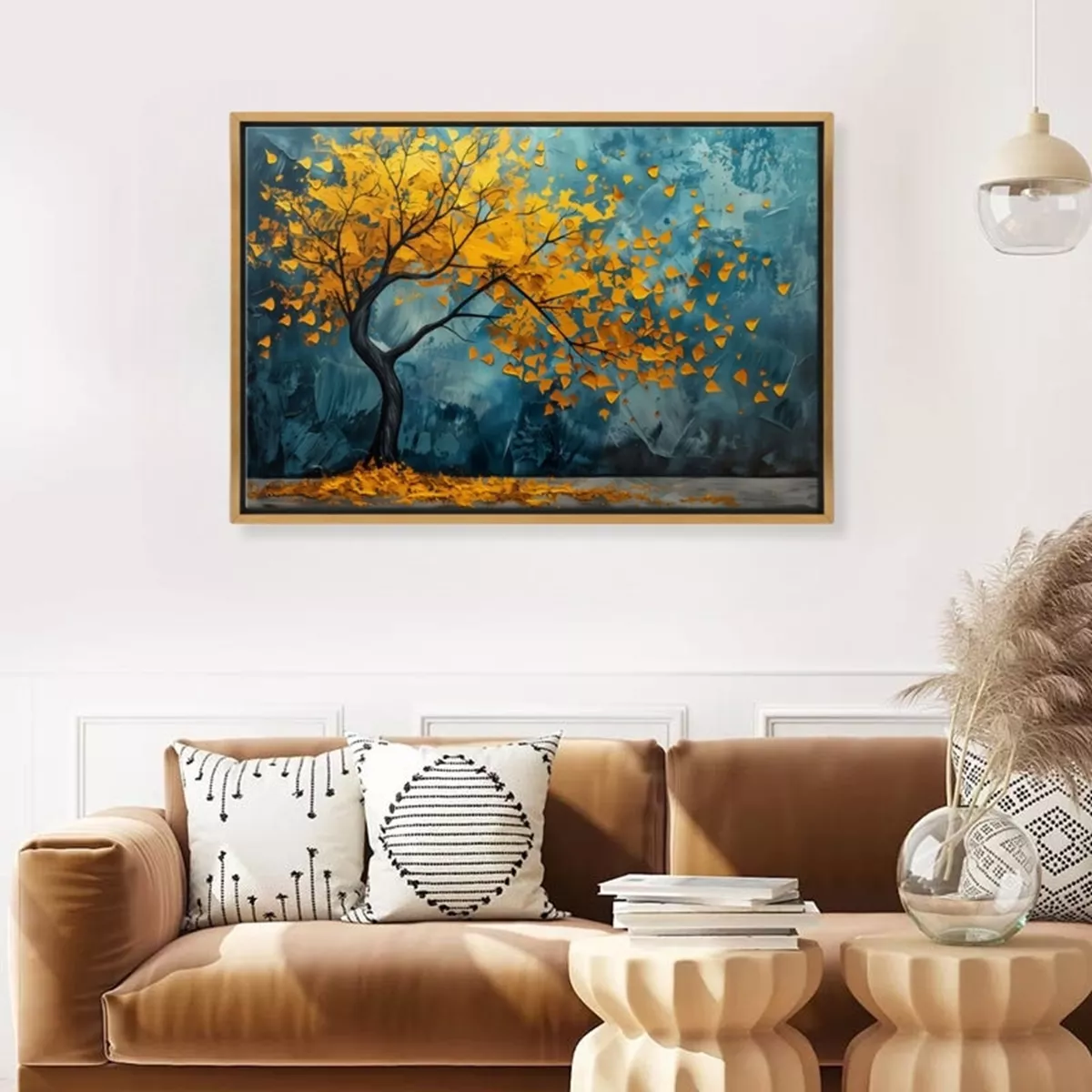 Πίνακας σε καμβά "Windblown Tree" Megapap ψηφιακής εκτύπωσης με κορνίζα χρώμα χρυσό 140x100x3εκ.
