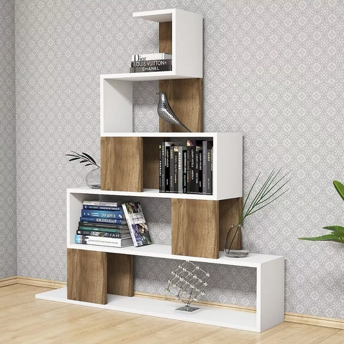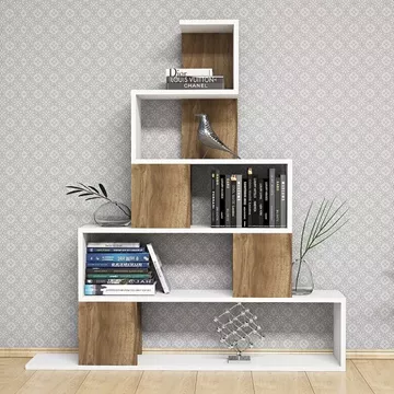 Βιβλιοθήκη ArteLibre PRUNELA Λευκό/Καρυδιά 120x22x131cm