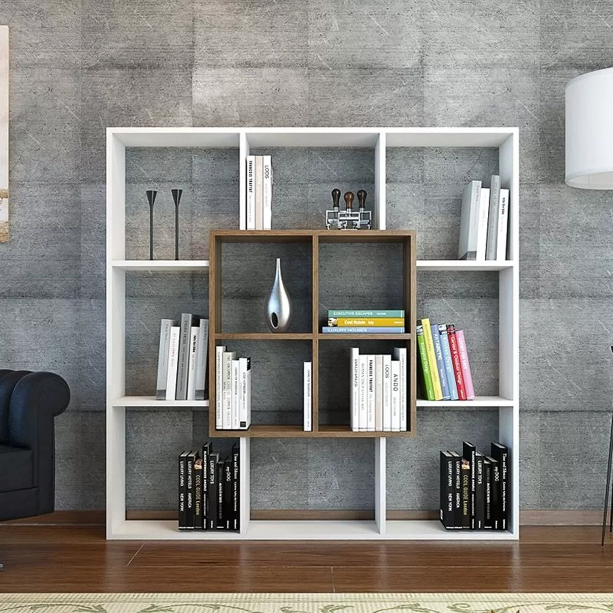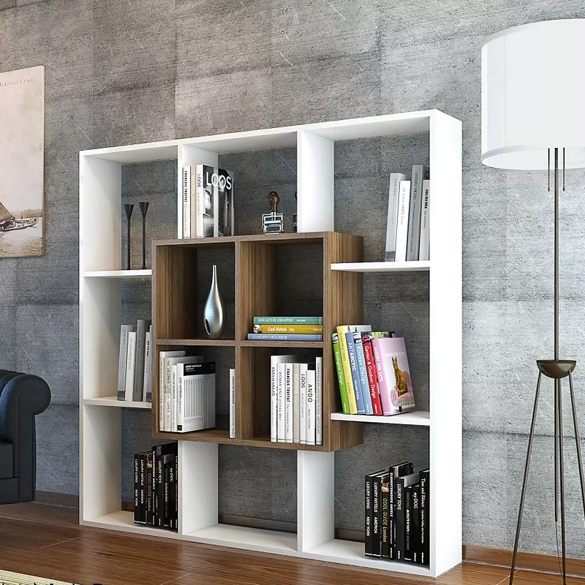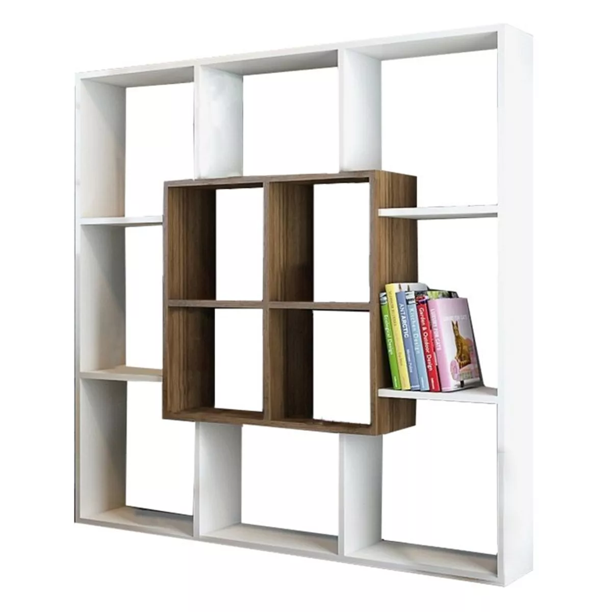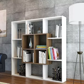 Βιβλιοθήκη ArteLibre NISIROS Λευκό/Καρυδιά Μοριοσανίδα/Μελαμίνη 136x22x136cm