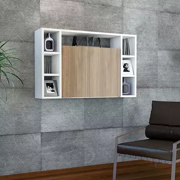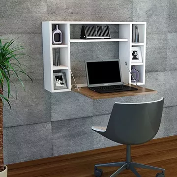 Γραφείο Τοίχου Ανοιγόμενο ArteLibre AMORGOS Λευκό/Καρυδί Μοριοσανίδα 90x20+46x60cm