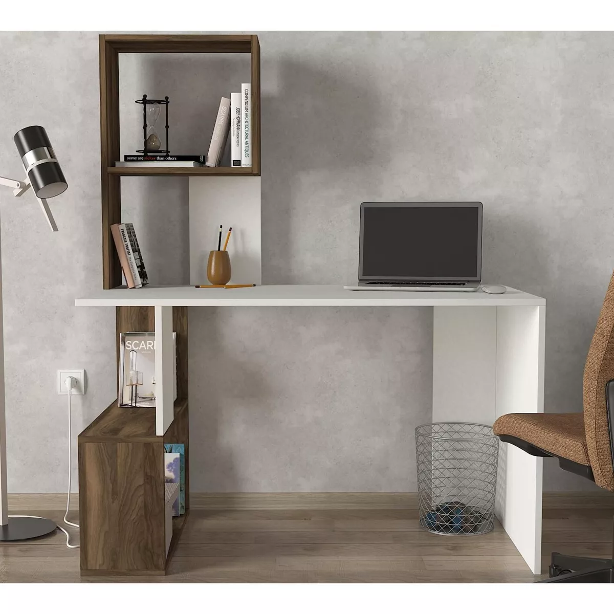 Γραφείο-Βιβλιοθήκη ArteLibre ArteLibre SIROS Λευκό/Καρυδί Μοριοσανίδα/Μελαμίνη 120x60x74/148cm