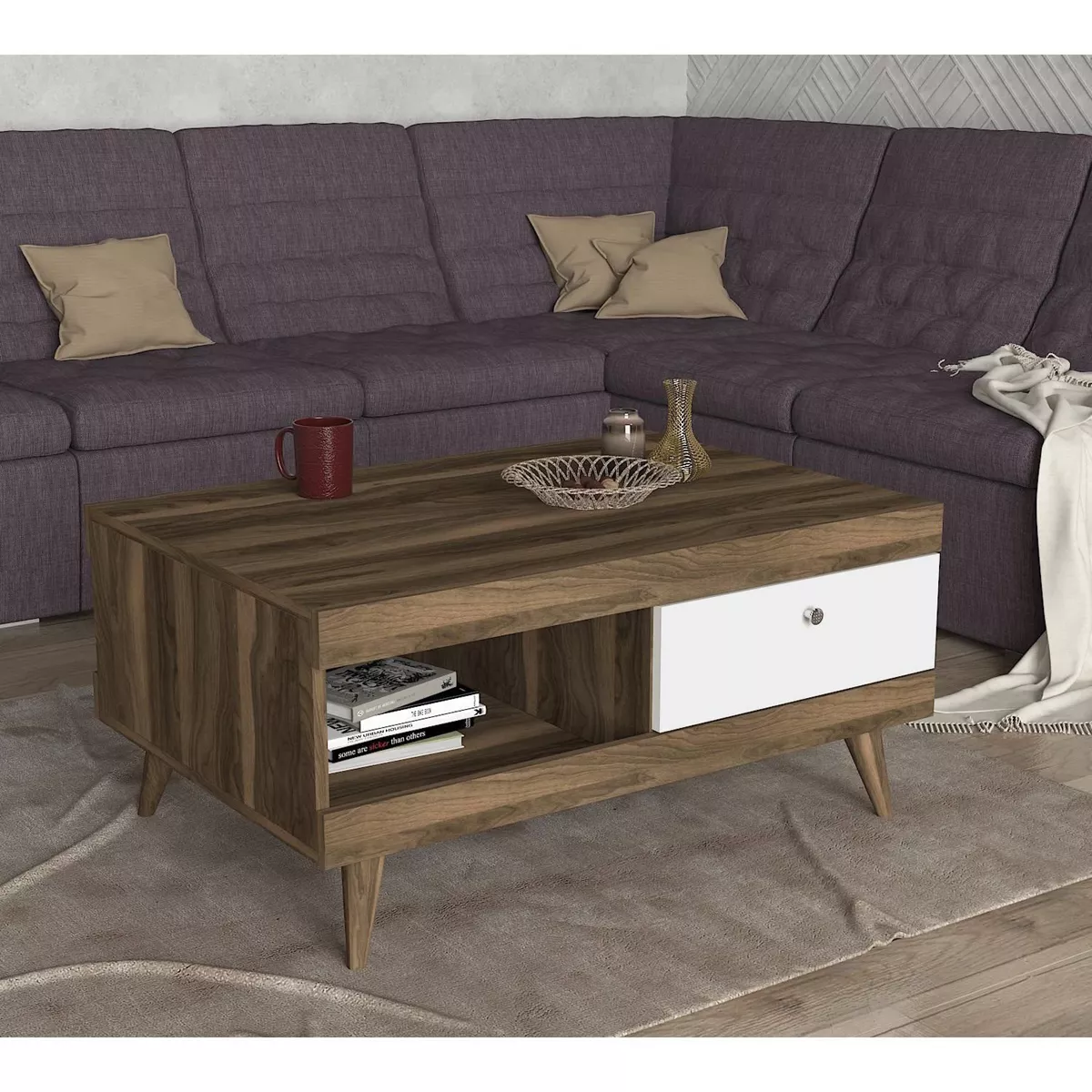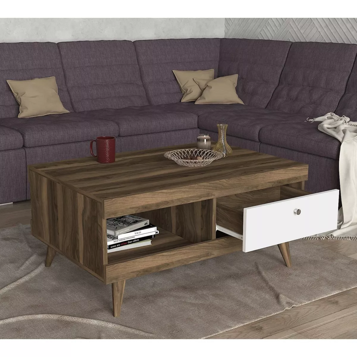 Τραπεζάκι Σαλονιού ArteLibre Hios Λευκό-Σκούρο Καφέ 100x65x47cm