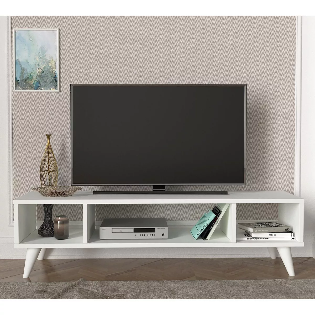 Έπιπλο Τηλεόρασης ArteLibre Samos Λευκό 120x35x40cm