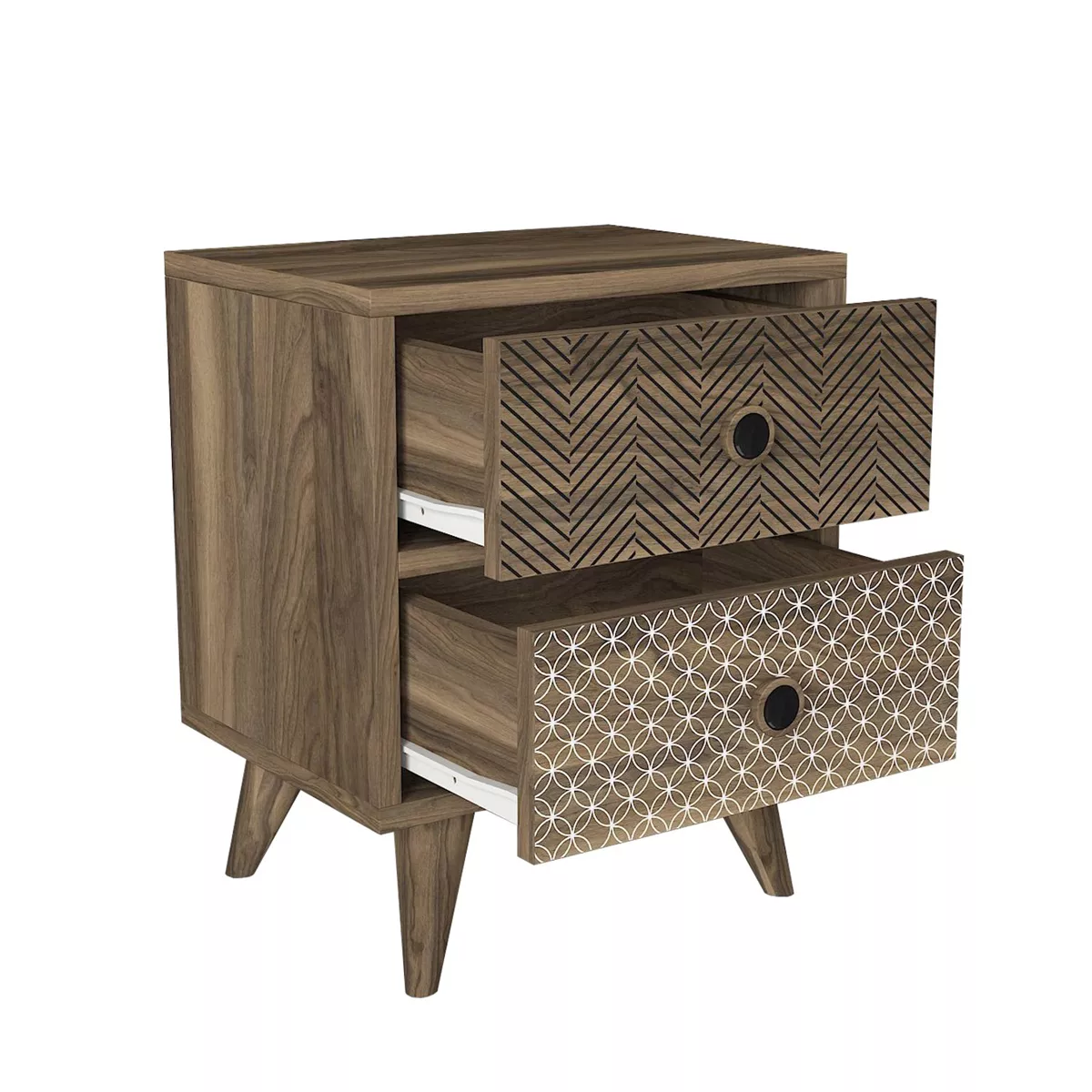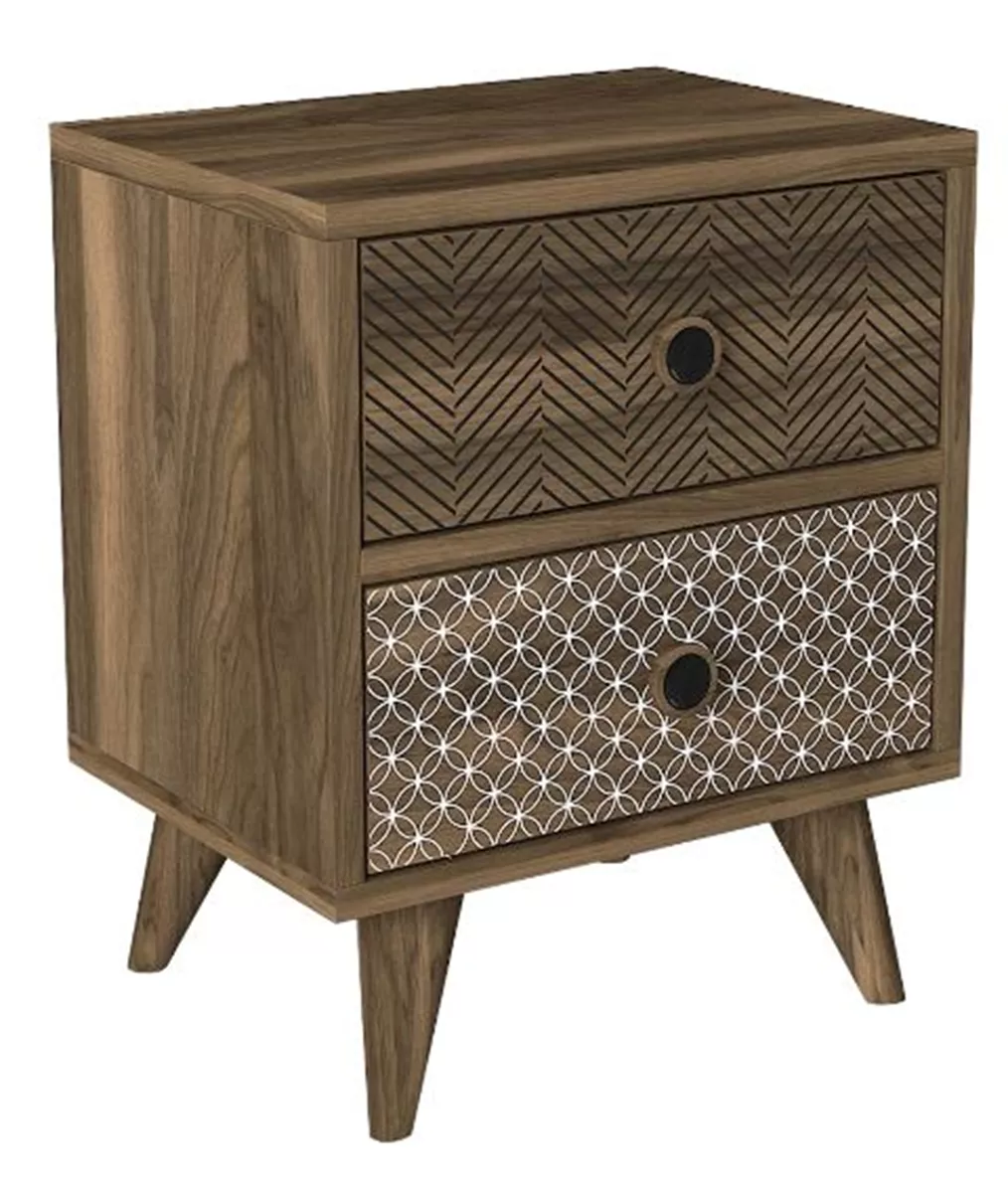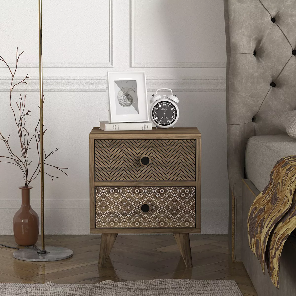 Κομοδίνο ArteLibre KALYMNOS Καρυδί Με Σχέδιο 40x30x48cm