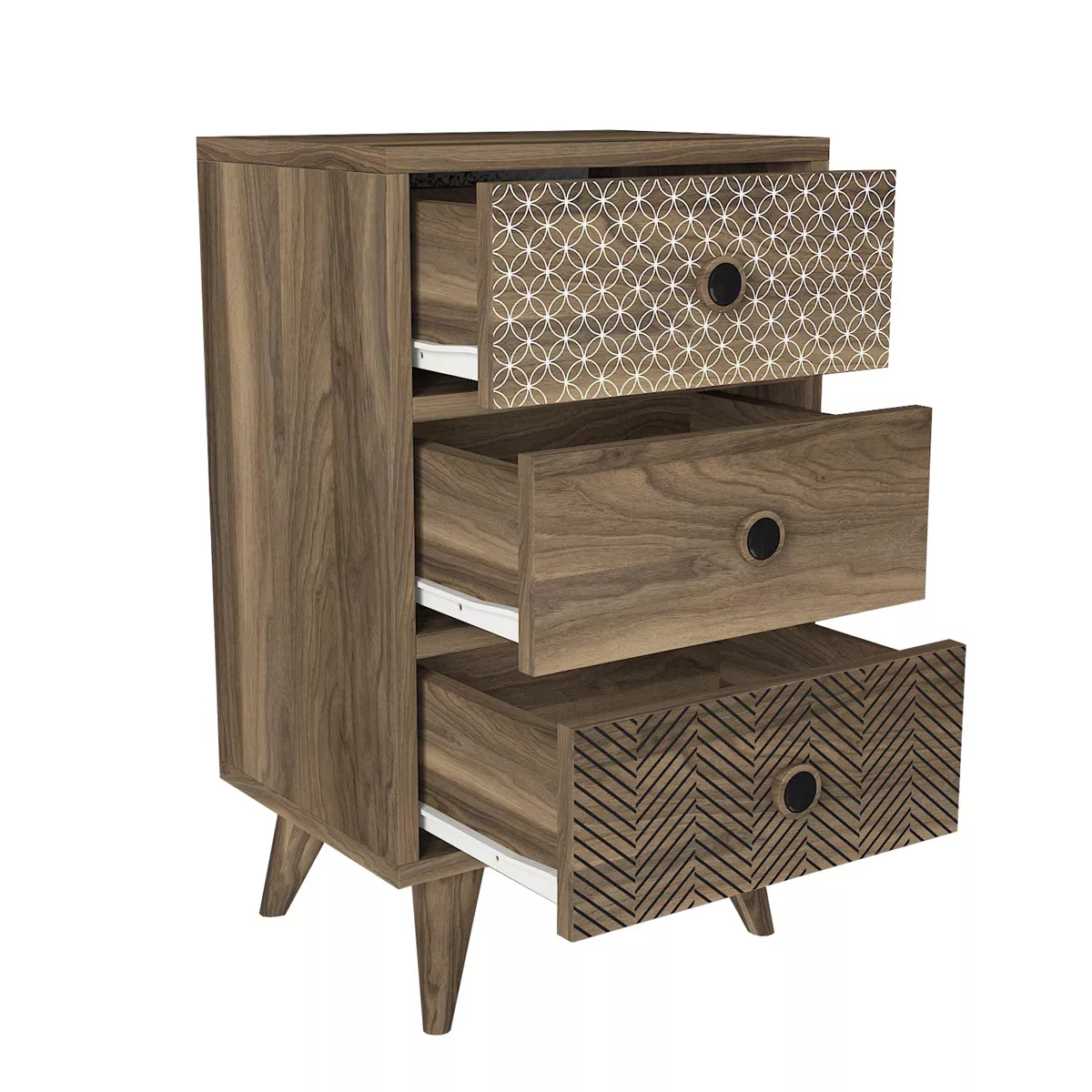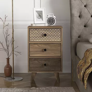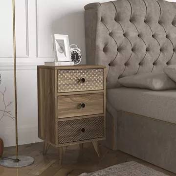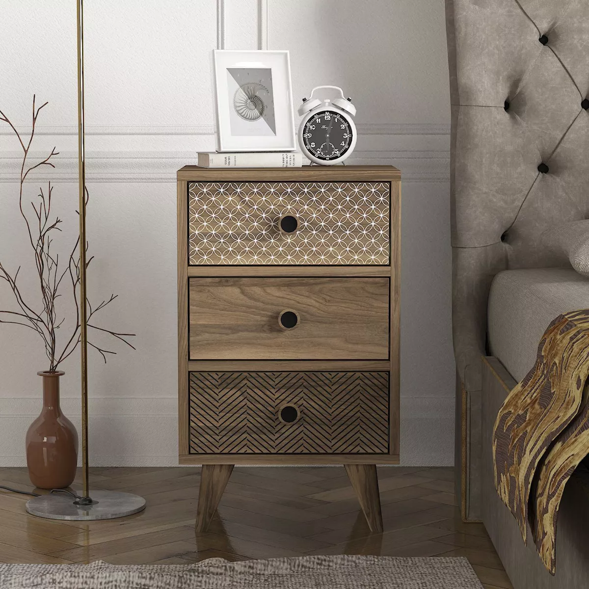 Κομοδίνο ArteLibre KALYMNOS Καρυδί Με Σχέδιο 40x30x65cm