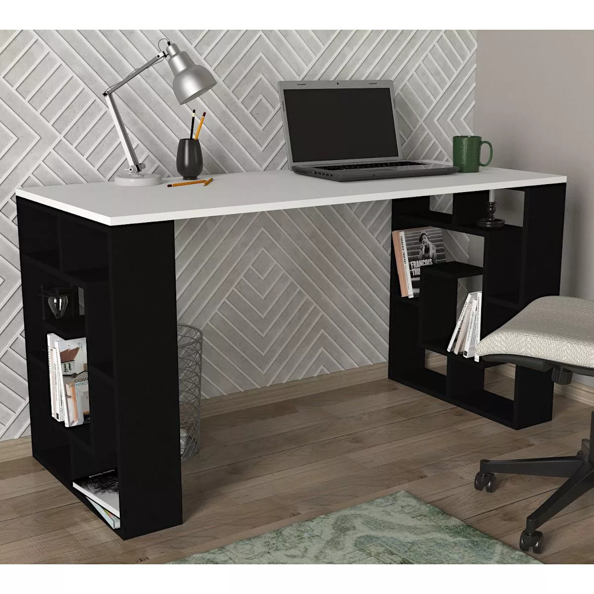 Γραφείο ArteLibre LINE Λευκό/Μαύρο 140x60x74cm
