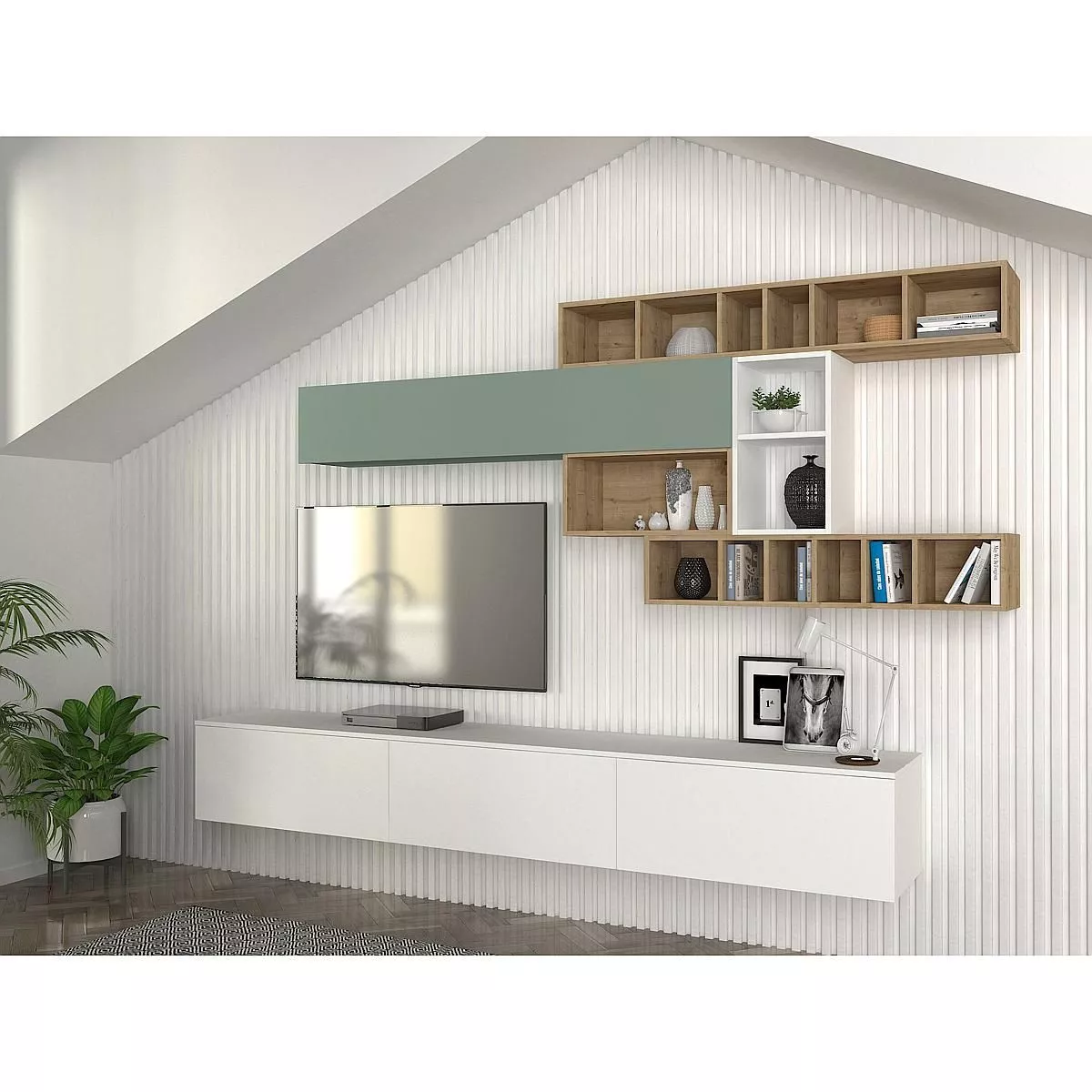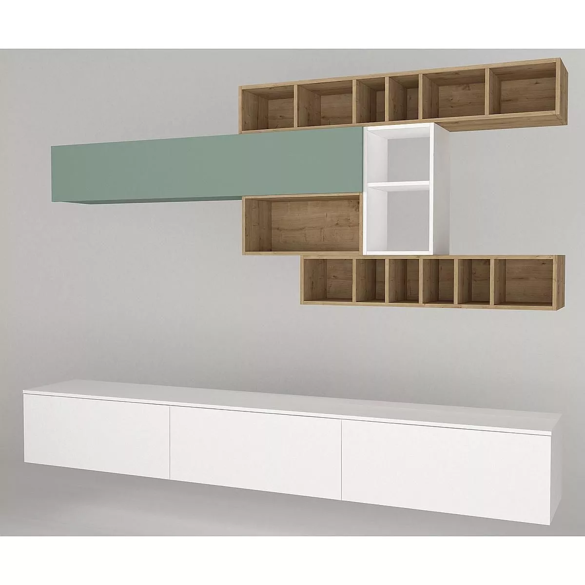 Σύνθετο ArteLibre GEORGIA Λευκό/Sapphire/Τιρκουάζ Μοριοσανίδα 280x45x180cm
