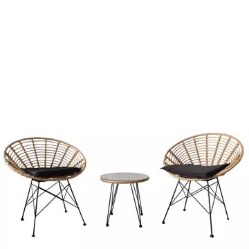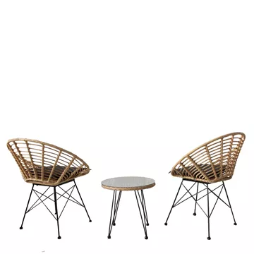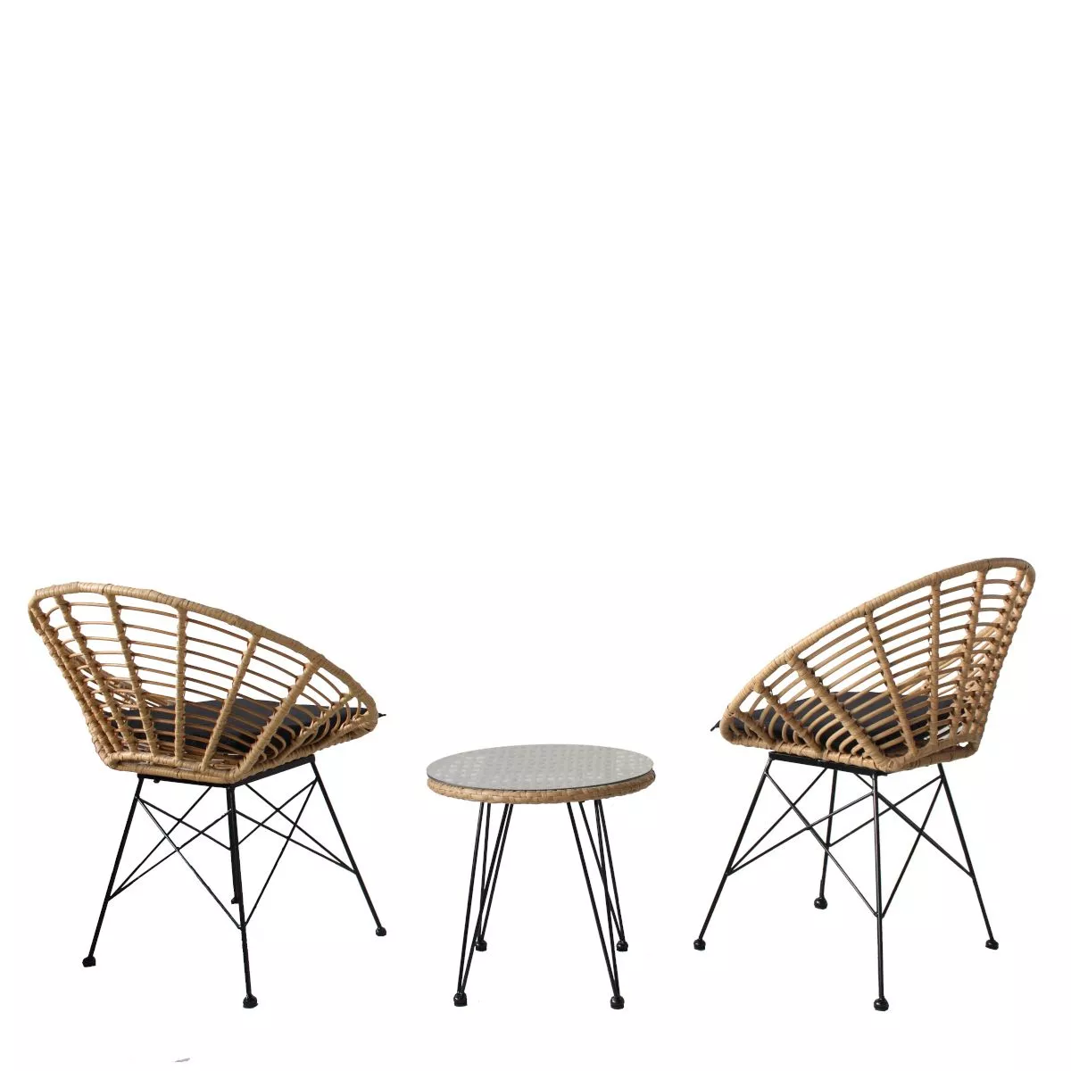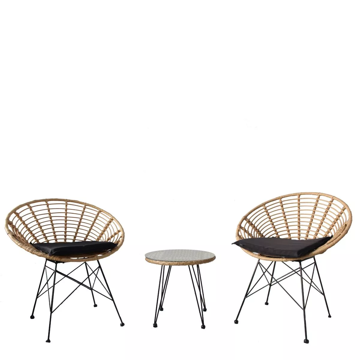 Σετ Τραπεζαρία Κήπου ArteLibre RICHIE Φυσικό/Μαύρο Μέταλλο/Rattan Με 2 Πολυθρόνες