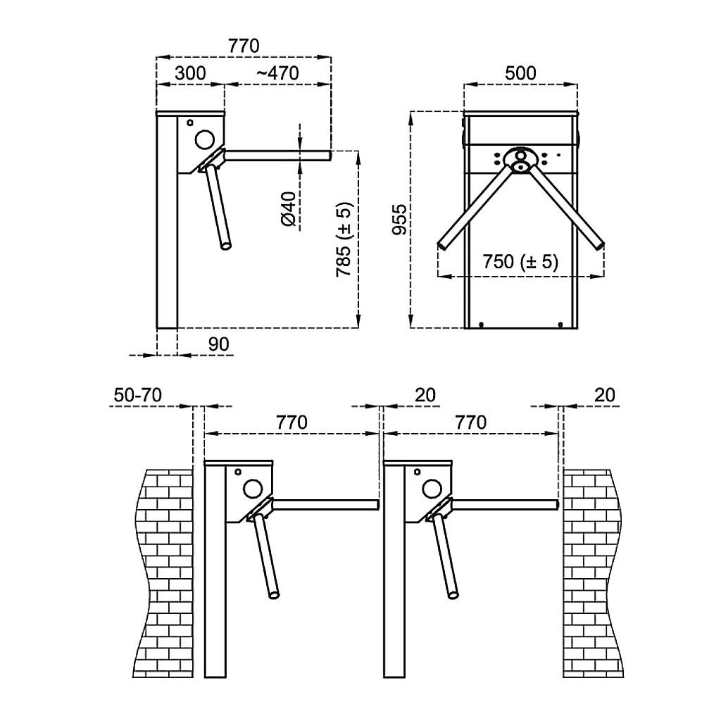 • Τρίποδο τουρνικέ 3 βραχιόνων, μονή διέλευση ανά άτομο, για οργανωμένη ροή πεζών