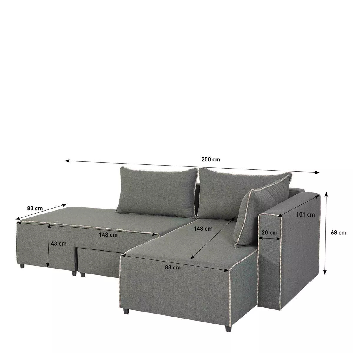 Καναπές Γωνιακός ArteLibre Αναστρέψιμη Γωνία THIAGO Γκρι/Λευκό 101x250x97cm