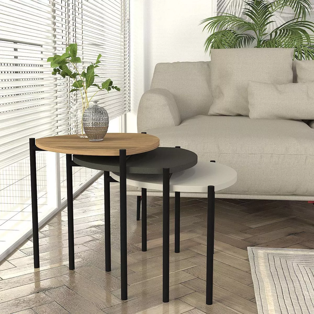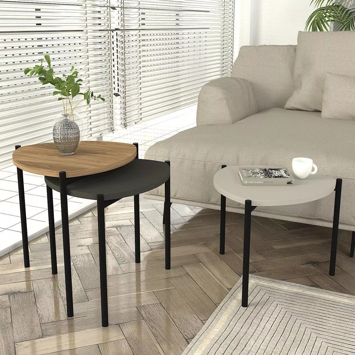 Τραπεζάκι Σαλονιού ArteLibre KARPATHOS Φυσικό/Ανθρακί/Γκρι Μοριοσανίδα/Μελαμίνη 45x45x45/40/35cm Σετ 3Τμχ