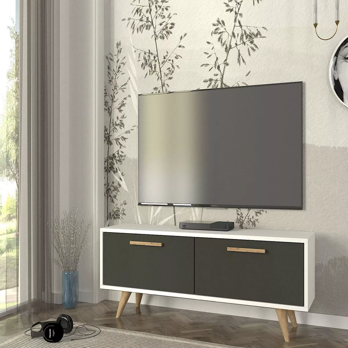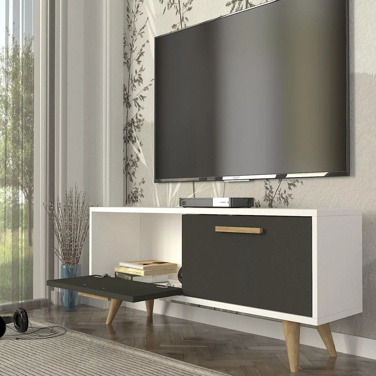 Έπιπλο Τηλεόρασης ArteLibre SCHIZA Λευκό/Ανθρακί Μοριοσανίδα/Μελαμίνη 120x30x45cm