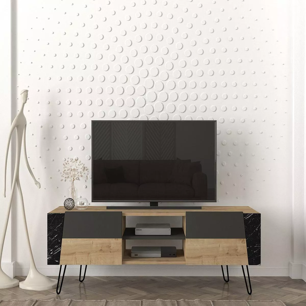 Έπιπλο Τηλεόρασης ArteLibre DIAPOROS Φυσικό/Μαύρο/Ανθρακί Μοριοσανίδα/Μελαμίνη 150x52x35cm