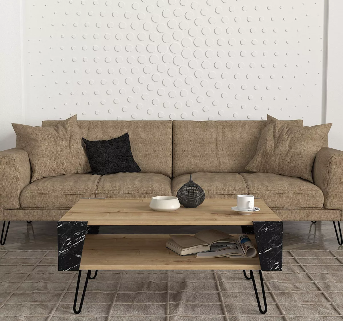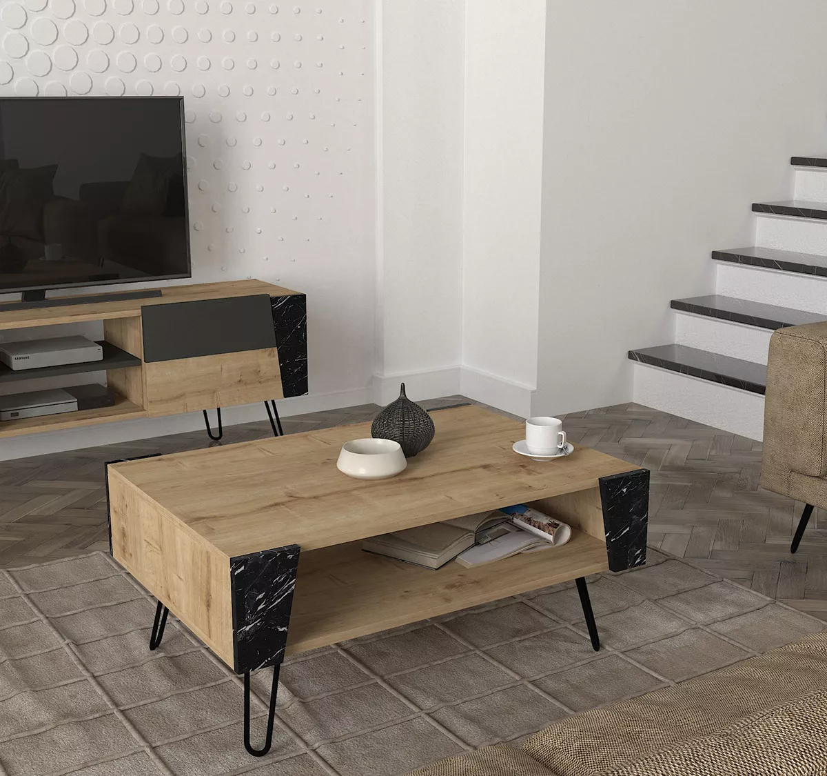 Τραπεζάκι Σαλονιού ArteLibre DIAPOROS Φυσικό/Μαύρο Μοριοσανίδα/Μελαμίνη 90x60x40cm