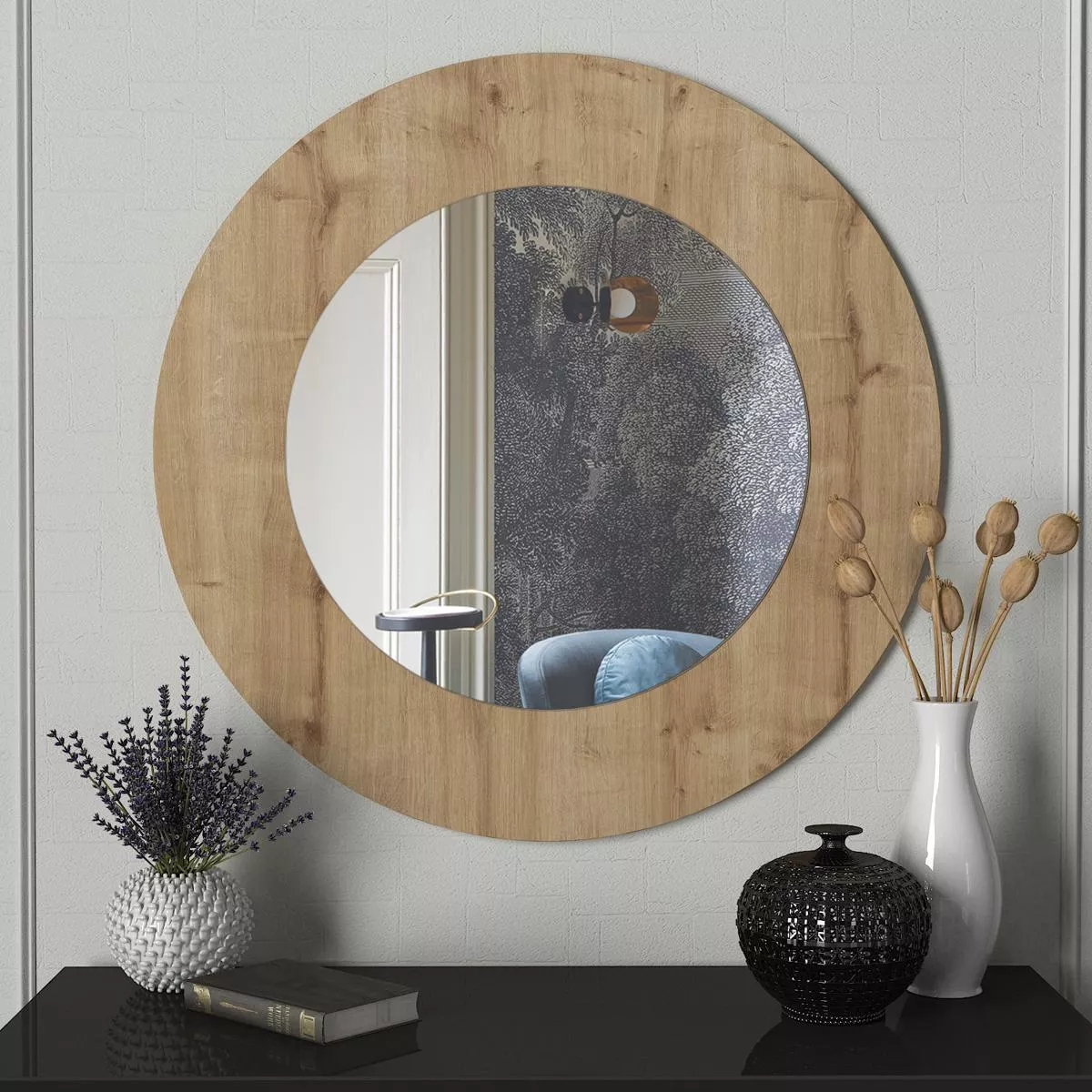 Καθρέπτης Τοίχου ArteLibre AASI Φυσικό Μοριοσανίδα/Γυαλί 90x90cm