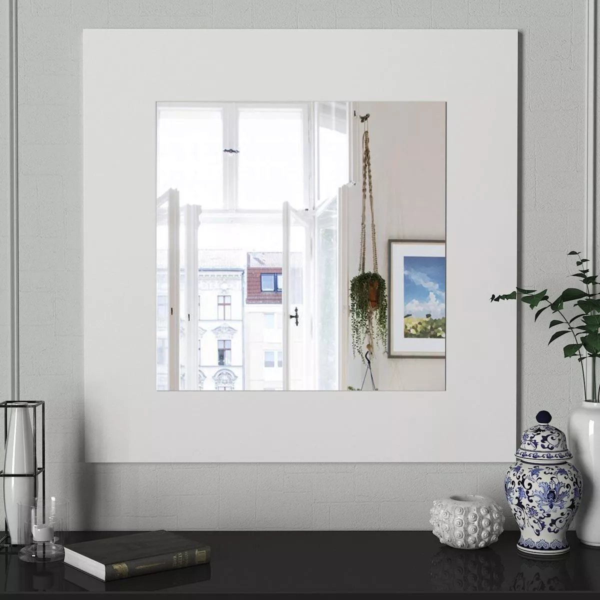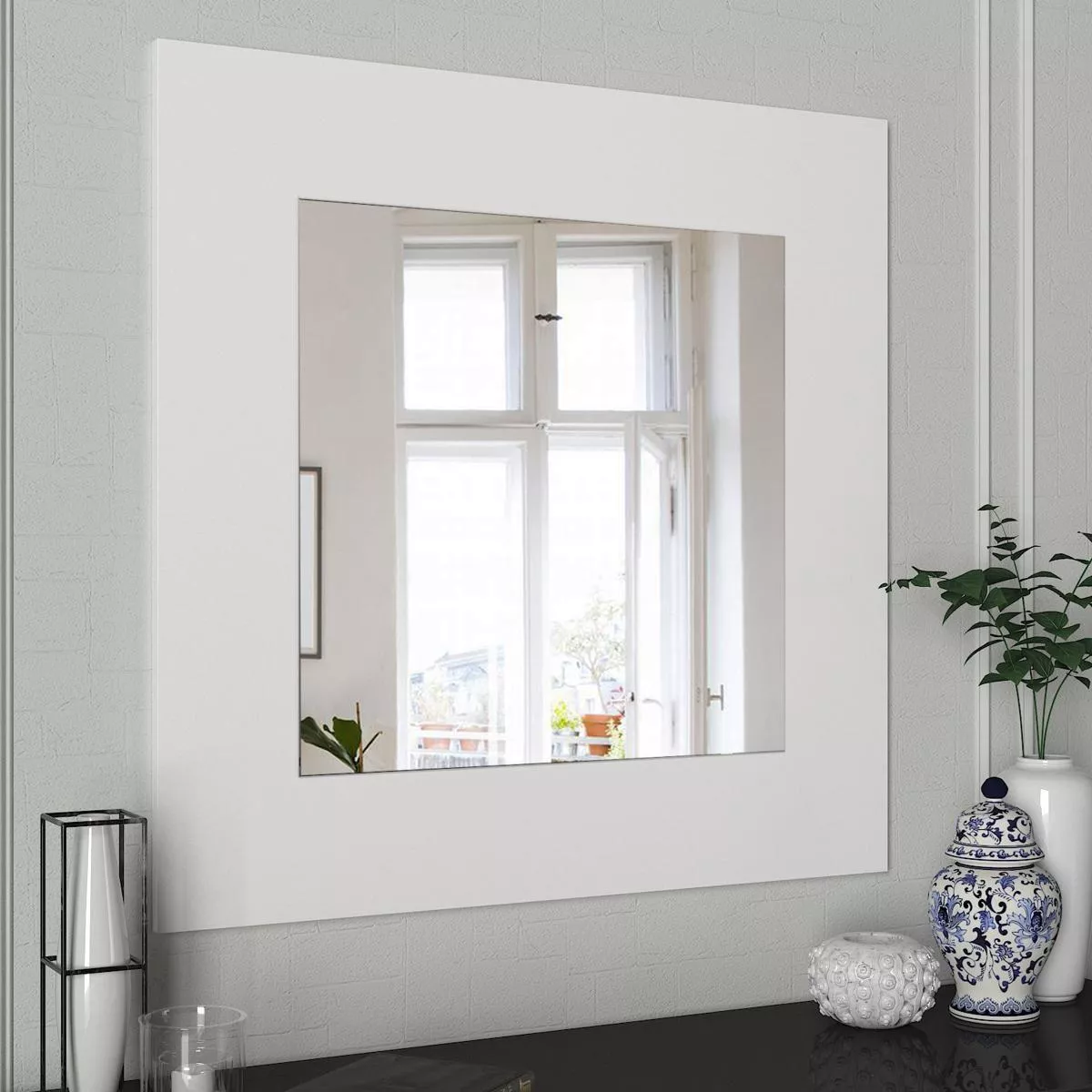 Καθρέπτης Τοίχου ArteLibre AAINA Λευκό Μοριοσανίδα/Γυαλί 90x90cm