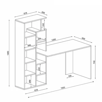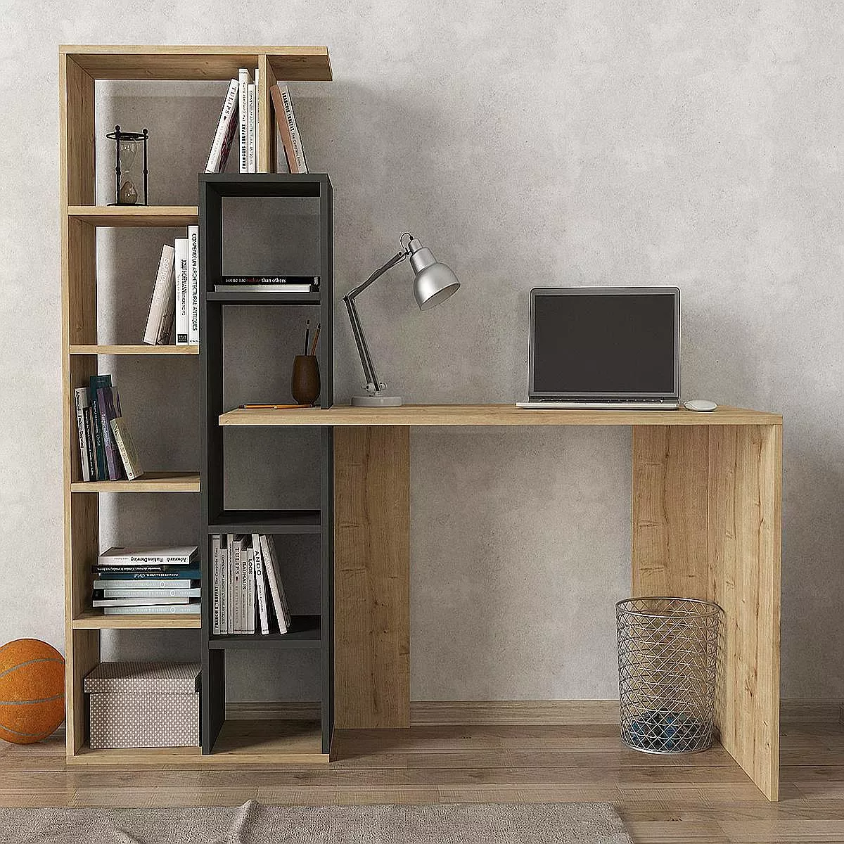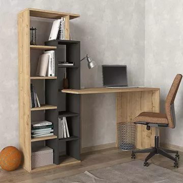 Γραφείο-Βιβλιοθήκη ArteLibre ArteLibre PRIMO Sapphire/Ανθρακί Μοριοσανίδα/Μελαμίνη 152x60x74/148cm