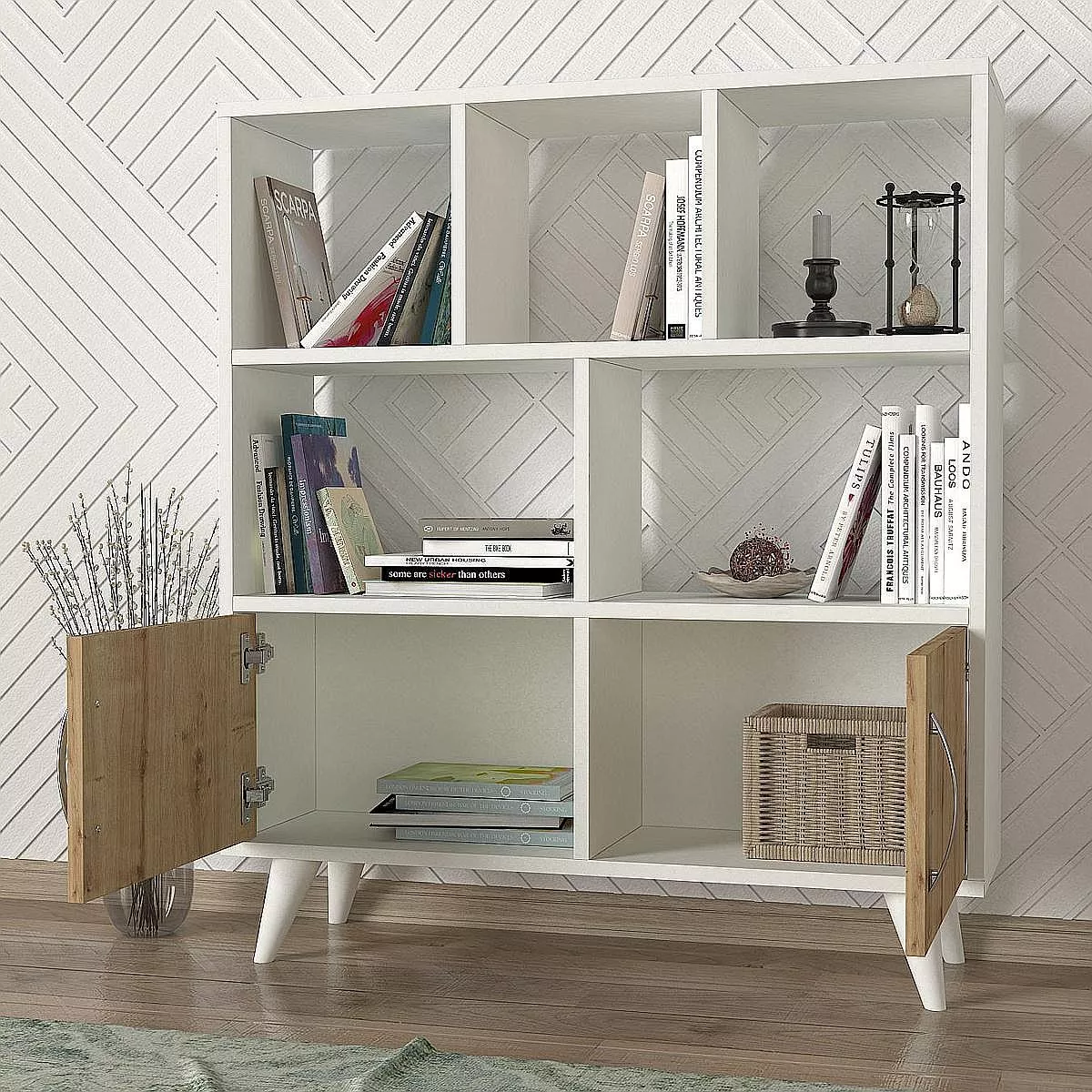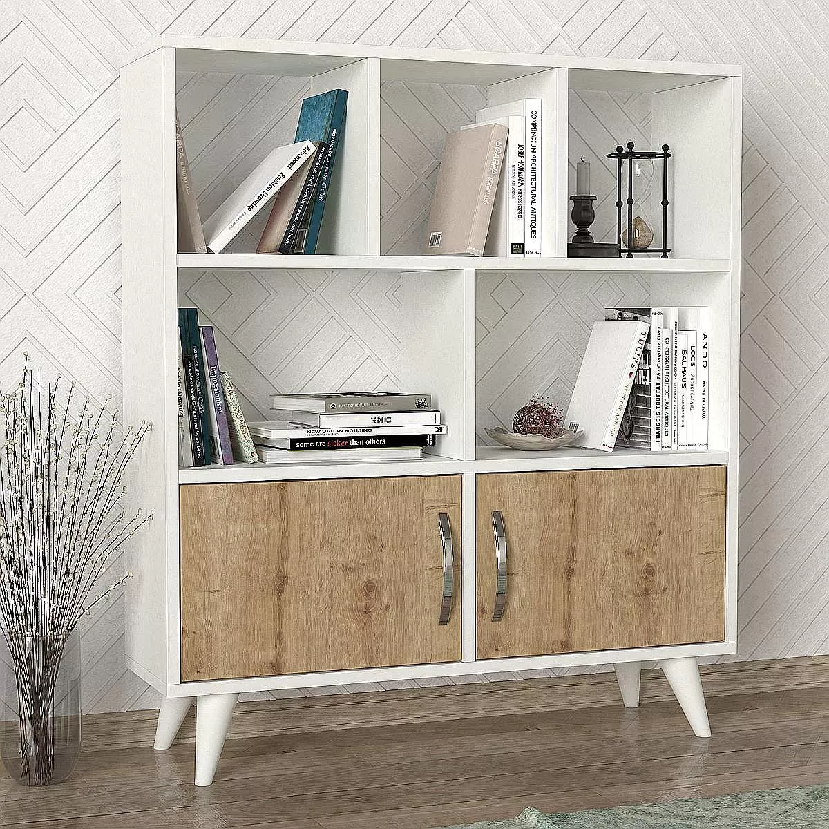 Βιβλιοθήκη ArteLibre SYMI Λευκό/Φυσικό Μοριοσανίδα/Μελαμίνη 90x22x105cm