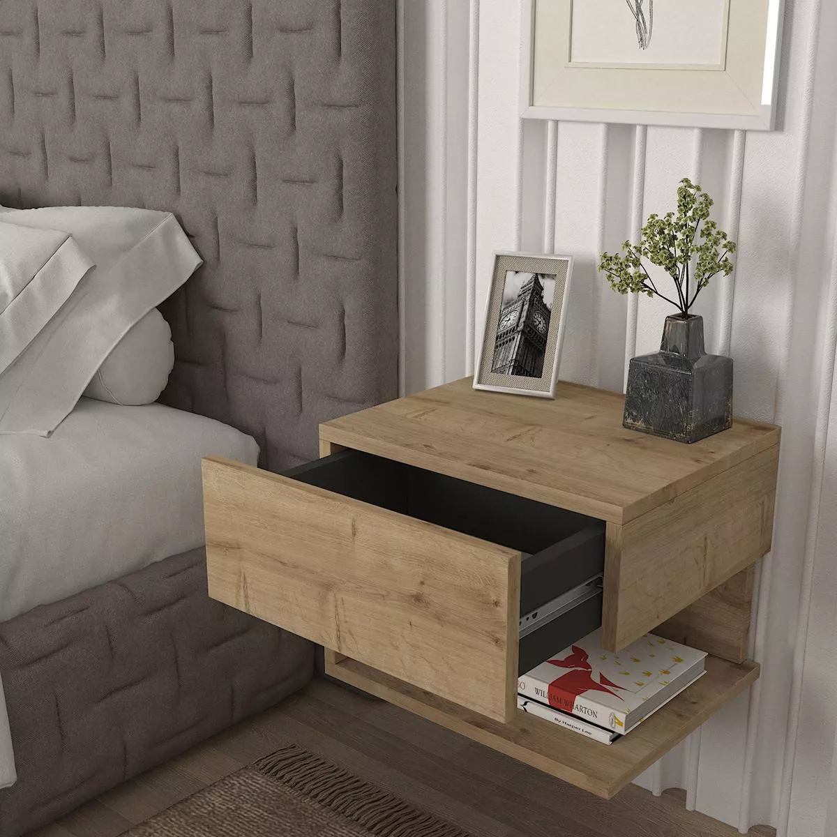 Κομοδίνο ArteLibre ABELL Φυσικό Μοριοσανίδα/Μελαμίνη 40x35x32cm